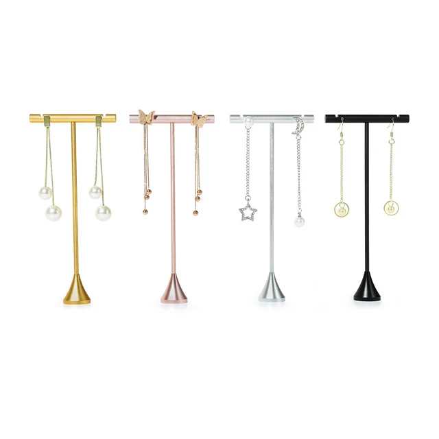Metal Ear Jewelry T Bar Rack Ear Studs Hanging Tower Storage Shelf Cabinet Window Earring Holder Stand