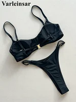 Metal Ring Mini Micro Thong Bikini Women Swimwear Female Swimsuit Two-pieces Bikini set Padded Bather Bathing Suit Swim V7513