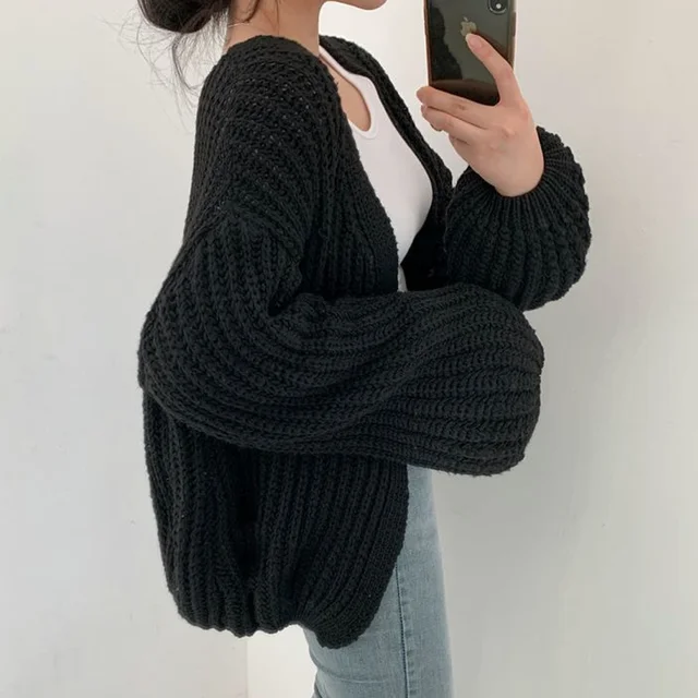 Original price was: 40.09$.21.25$Current price is: 21.25$.MEXZT Vintage Harajuku Lantern Sleeve Women Cardigan Sweater Casual Korean Fall Streetwear Tops Coat