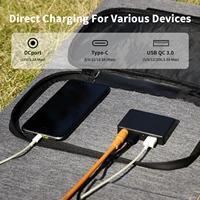【3 Output Ports】The 40W camping solar panel has 3 distinct output ports: 1 DC output(5A Max), 1 USB-C output, and 1 USB A. It can charge your phone, iPad, laptop, camera, GPS, power bank, and other devices wherever you are. Please note the maximum voltage and current per port