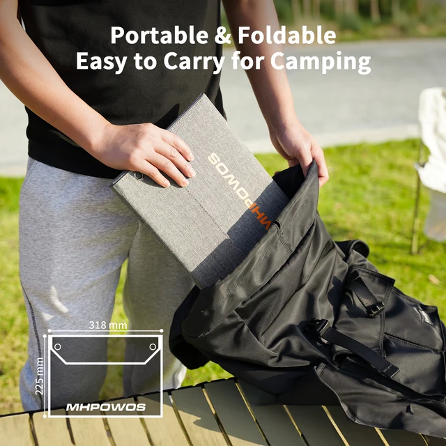 【High Conversion with IP65 Water Resistant】With a high conversion efficiency of 23%, the ETFE monocrystalline foldable solar panel can generate power in most conditions. The camping solar panel charger is simple to clean and resistant to water. Perfect for camping, hiking, and outdoor activities. Note: the junction box isn’t waterproof