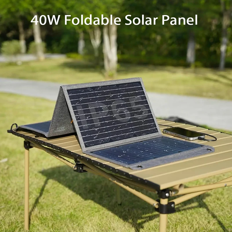 MHPOWOS 40W Foldable Solar Panel 5V USB Portable Battery Charger for Cell Phone Outdoor Waterproof Power Bank for Camping