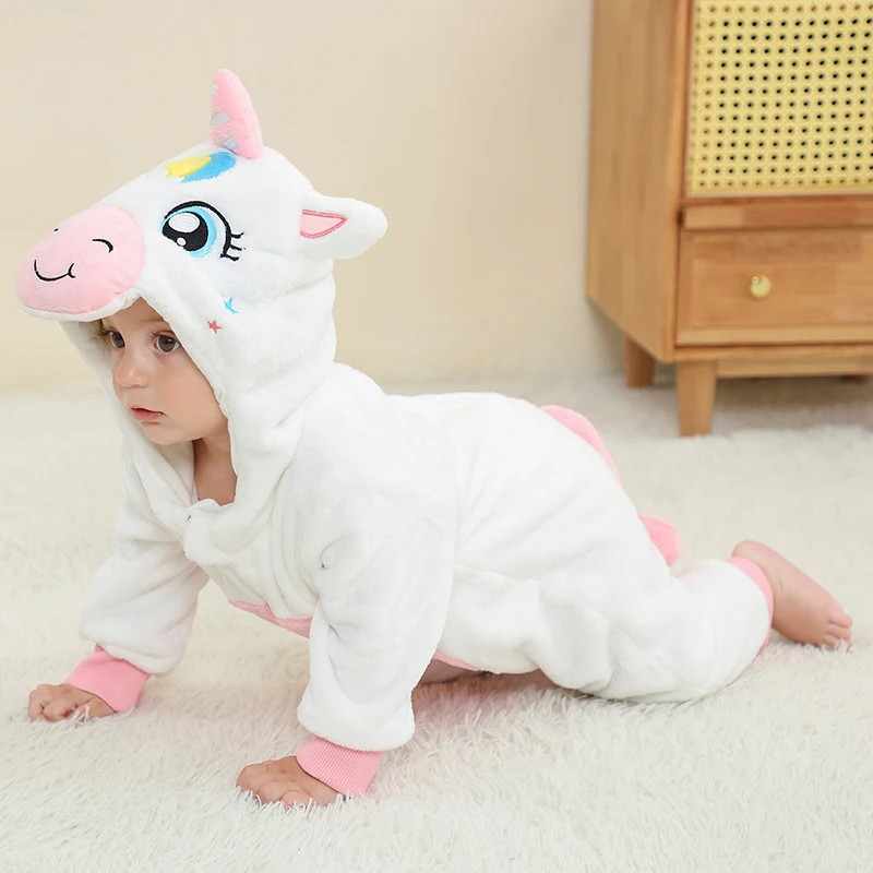 Baby Rompers Winter Outfits Thickened Cotton Jumpsuit with Foot Cover for Newborns Warm Fleece Lined Snowsuit for -5°C To 10°C