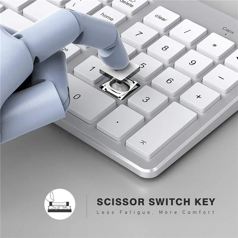 * Precise Touch Typing – Non-slip pad back and low profile silent keys improve typing experience. Scissor-style design under each key improves stability.