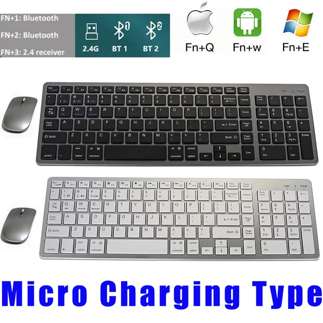 Micro Charging Wireless Keyboard Mouse Set Dual Bluetooth & 2.4G Mode for Mac OS/iOS/iPad OS Rechargeable Key Board for MacBook