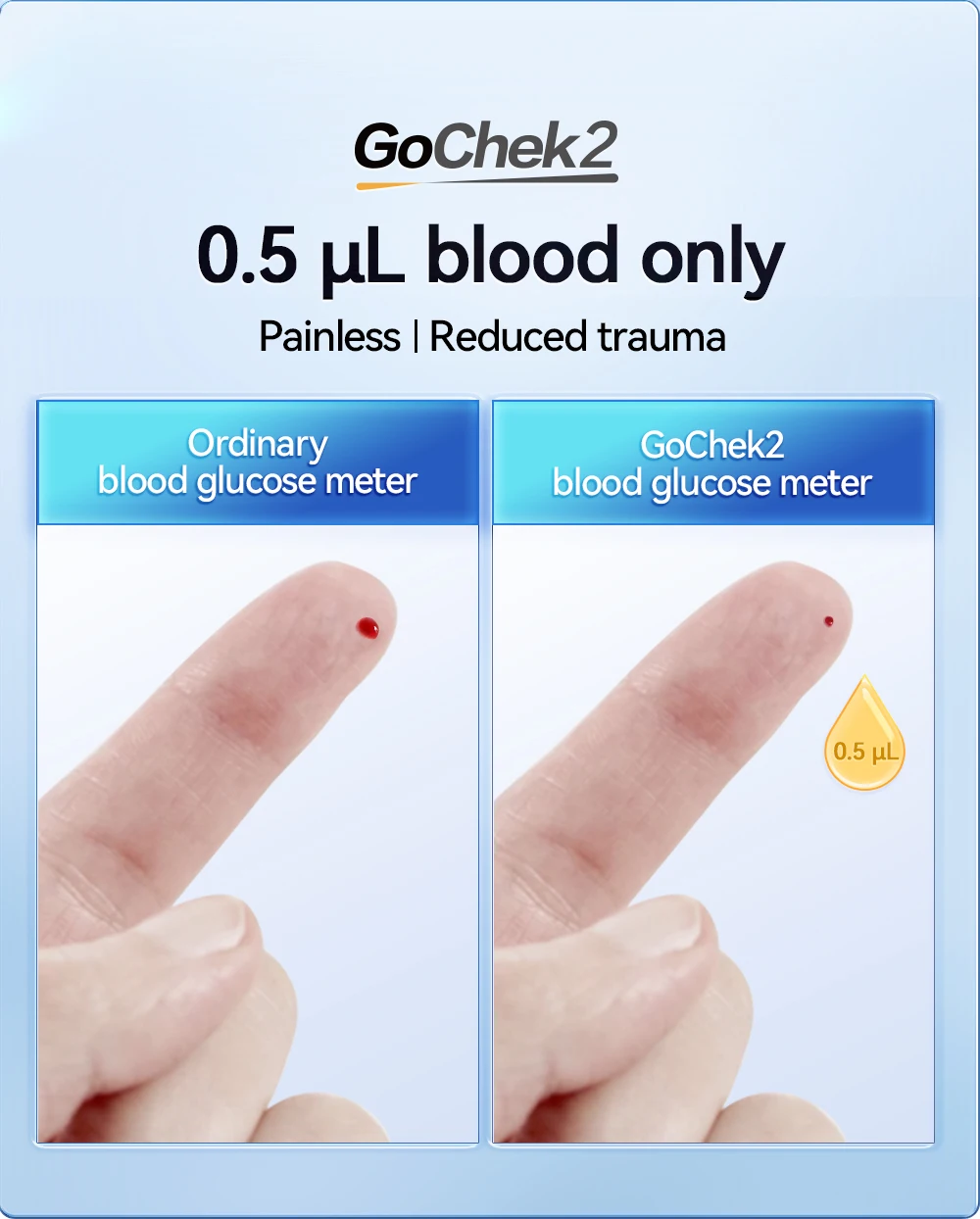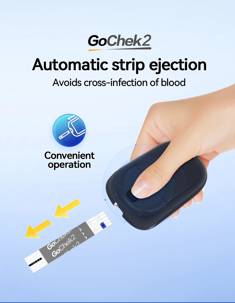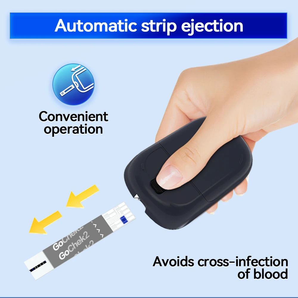 3️⃣ Apply a small blood drop to the test strip.