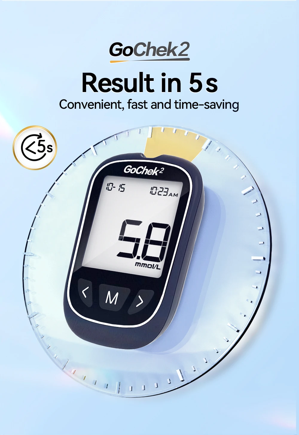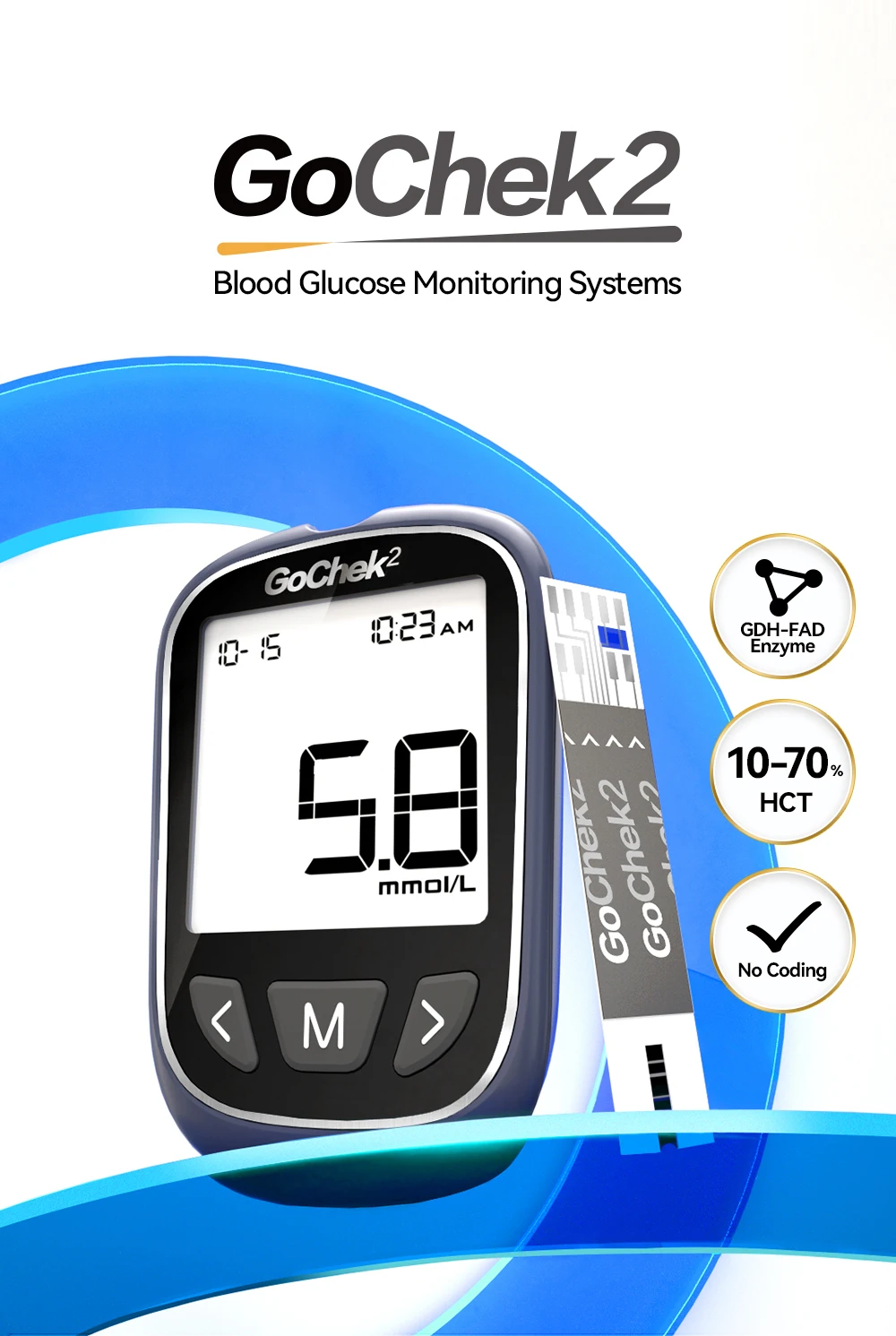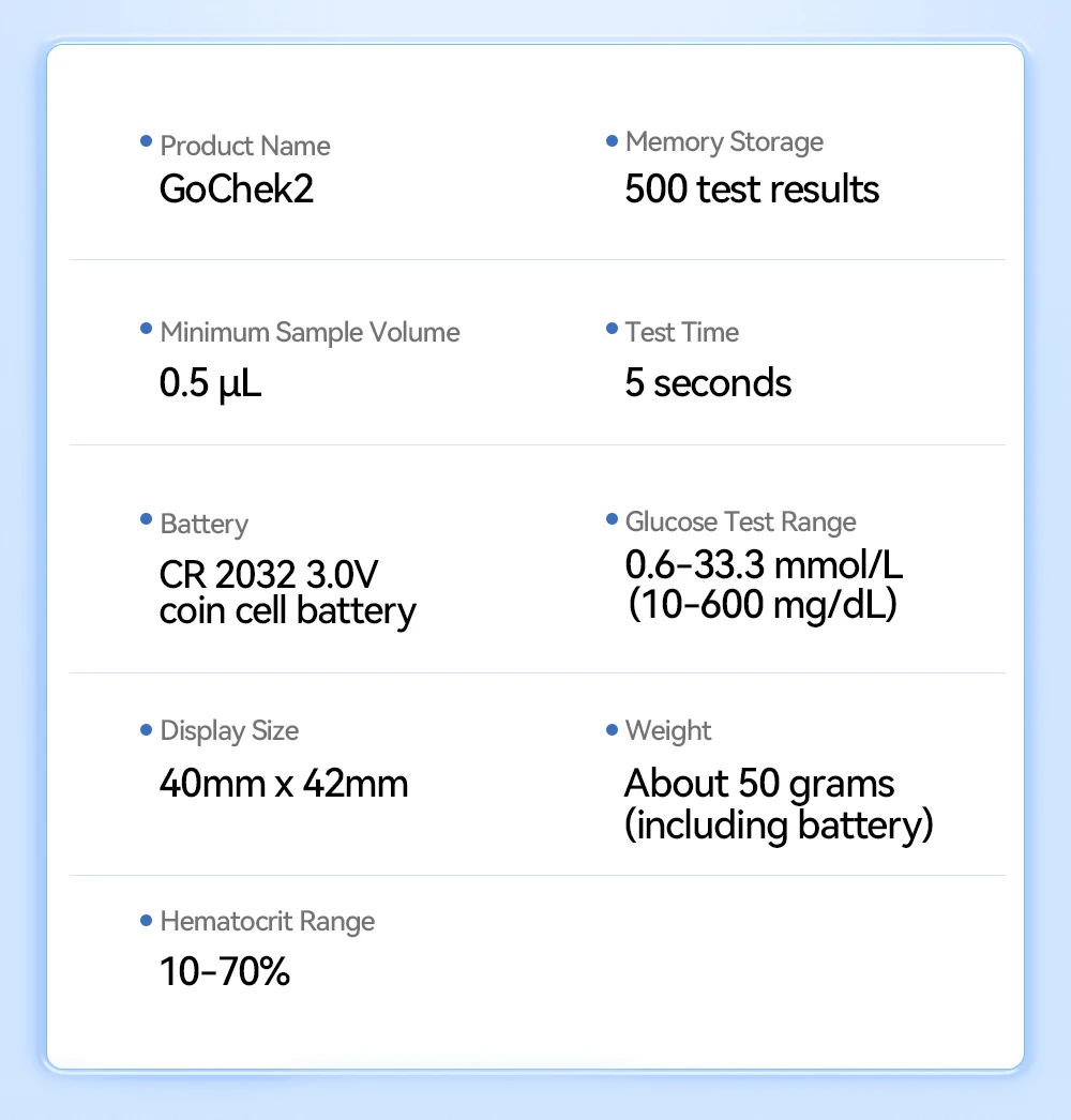 1 x Gochek2 Glucose Meter-mmol/L(Batteries Included)