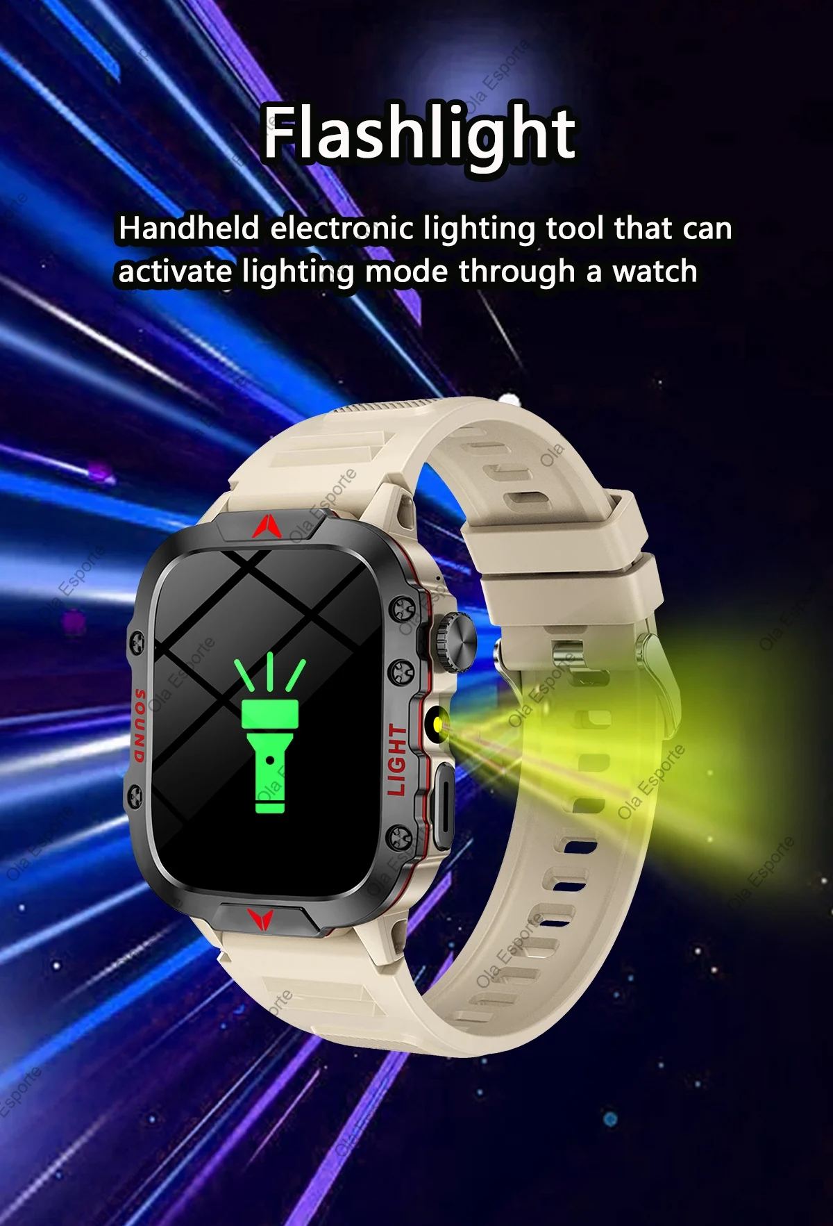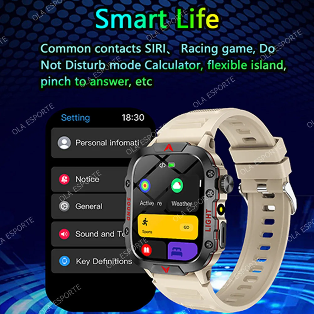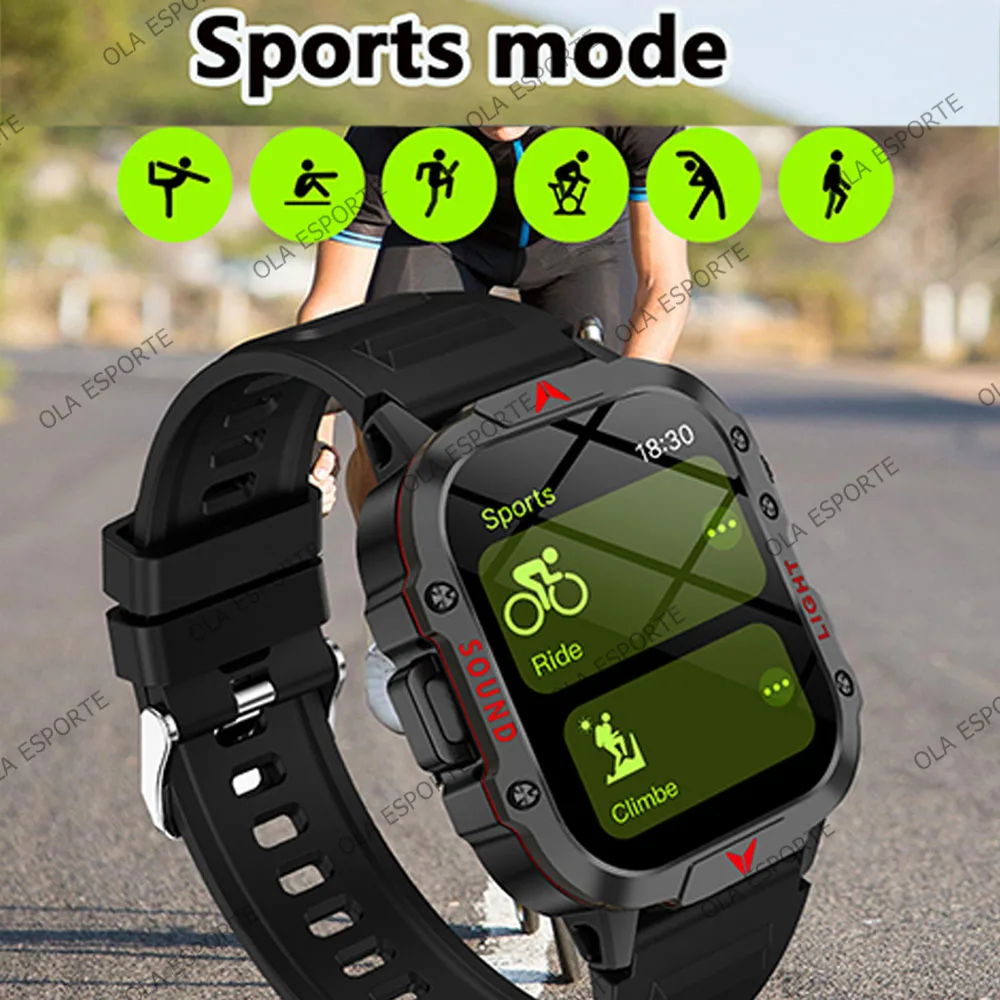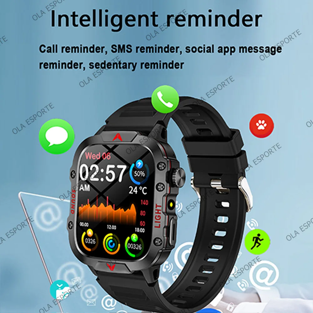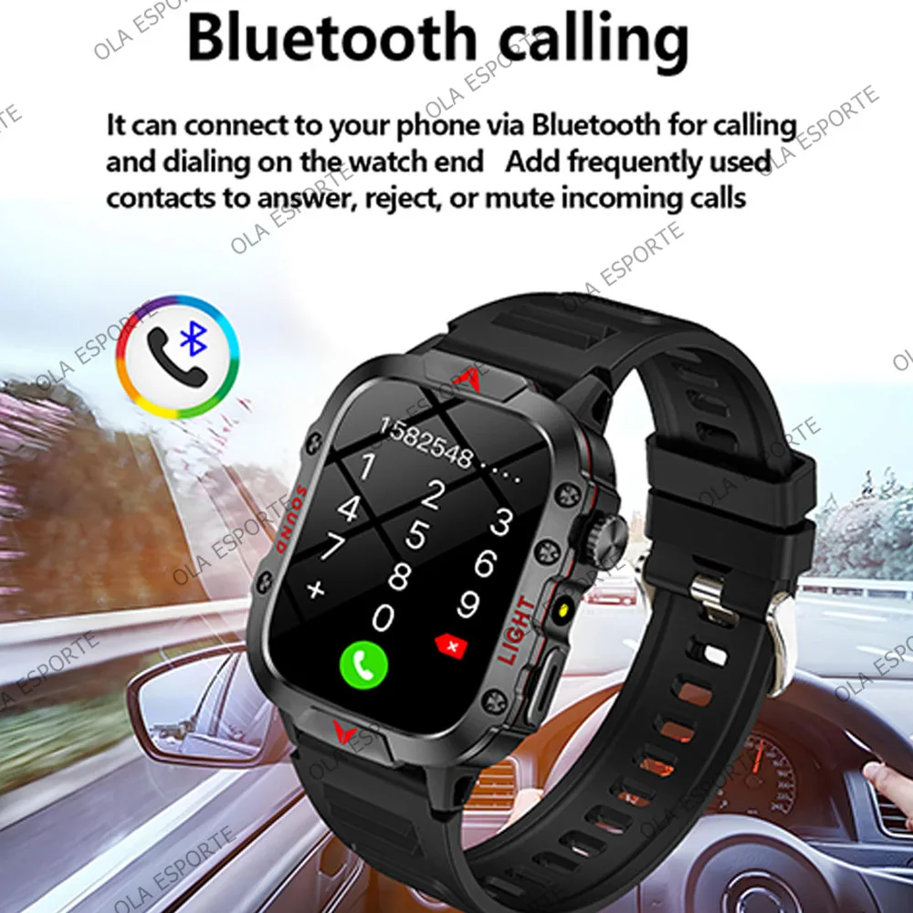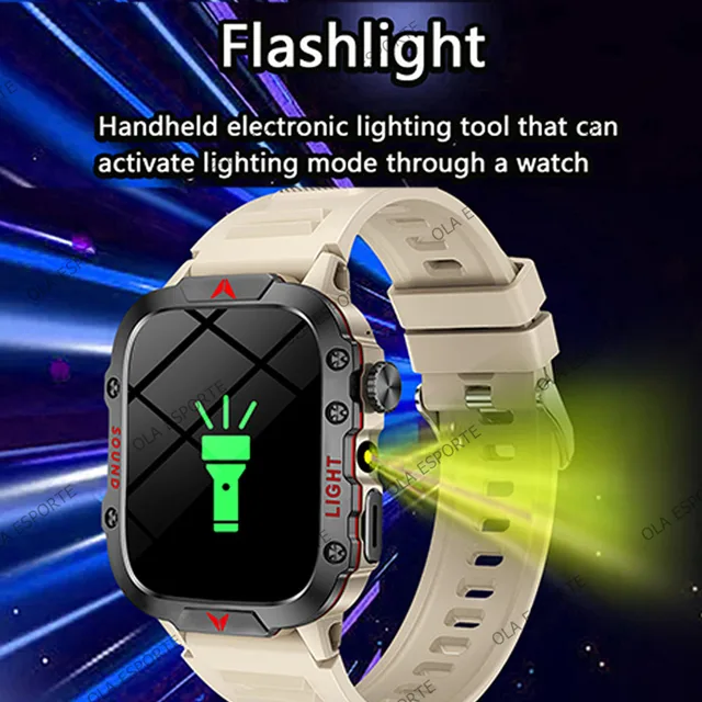 Military Outdoor Smartwatch Flashlight HD AMOLED Screen Bluetooth Call IP68 Waterproof Men Smart Watch DIY Dial 100+Sports Modes