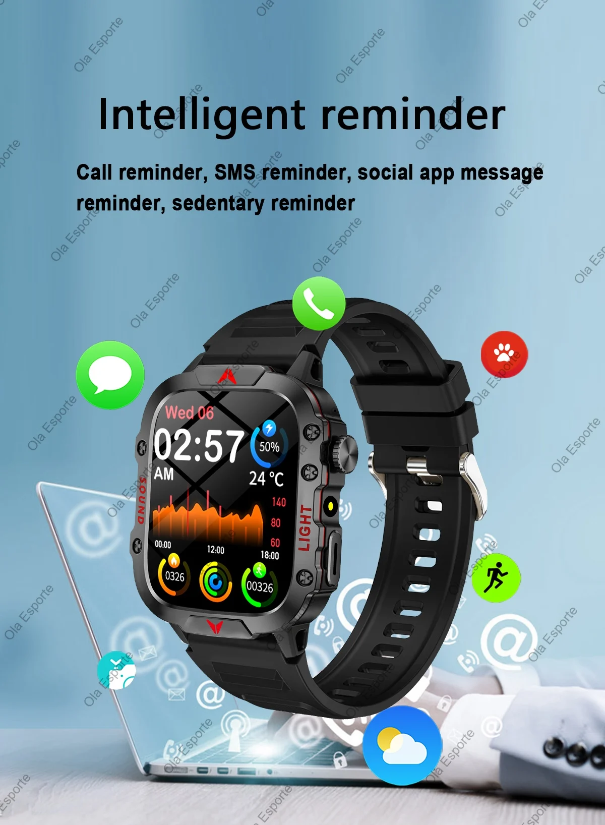 Intelligent reminder and voice control: With functions such as intelligent reminder and voice control, it makes your life more convenient. For example, it can vibrate to remind you when there are incoming calls, text messages, or social media notifications, and the watch can be operated through voice control.