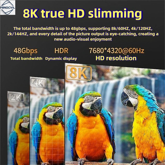 -6%MINGCVIL 48Gbps HDMI-compatible Cable 8K 60Hz 1m 2m 3m 5m HDMI-compatible 2.1 Cable 4K 120Hz HDR 3D Effect Video for HDTV PC
