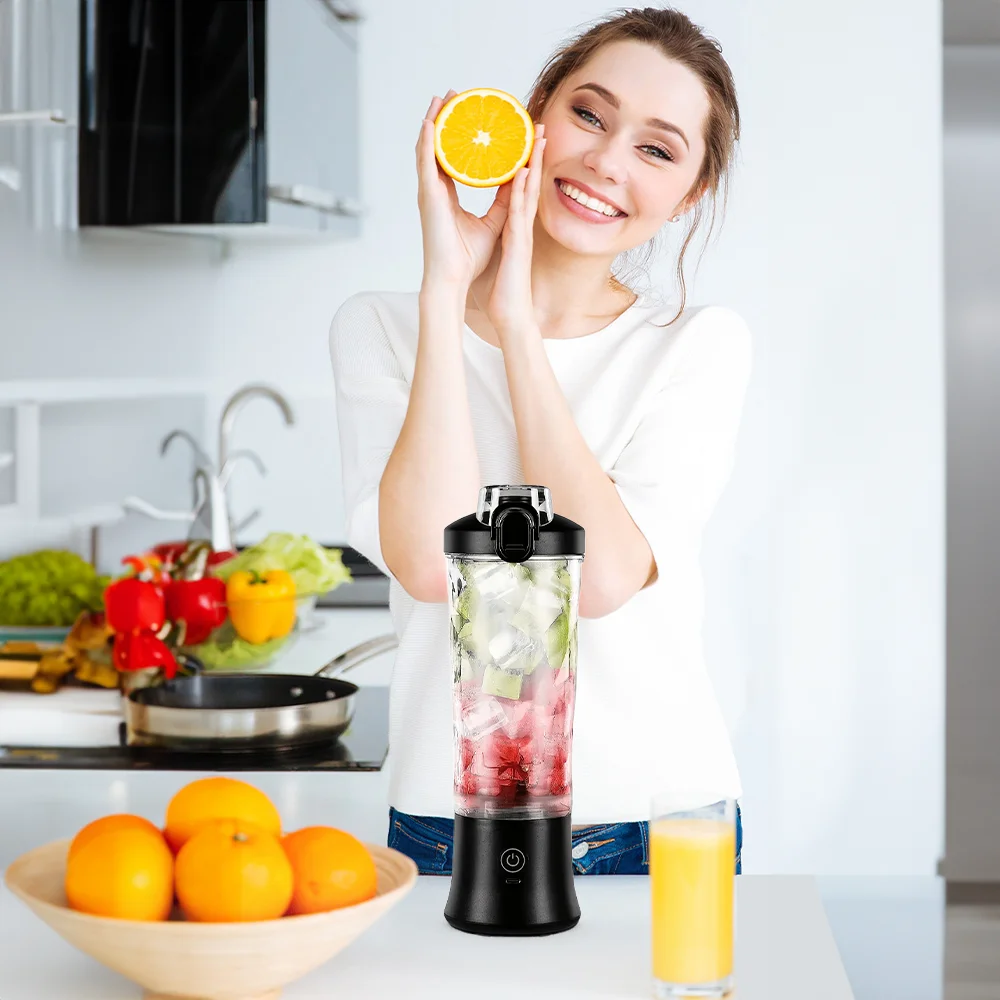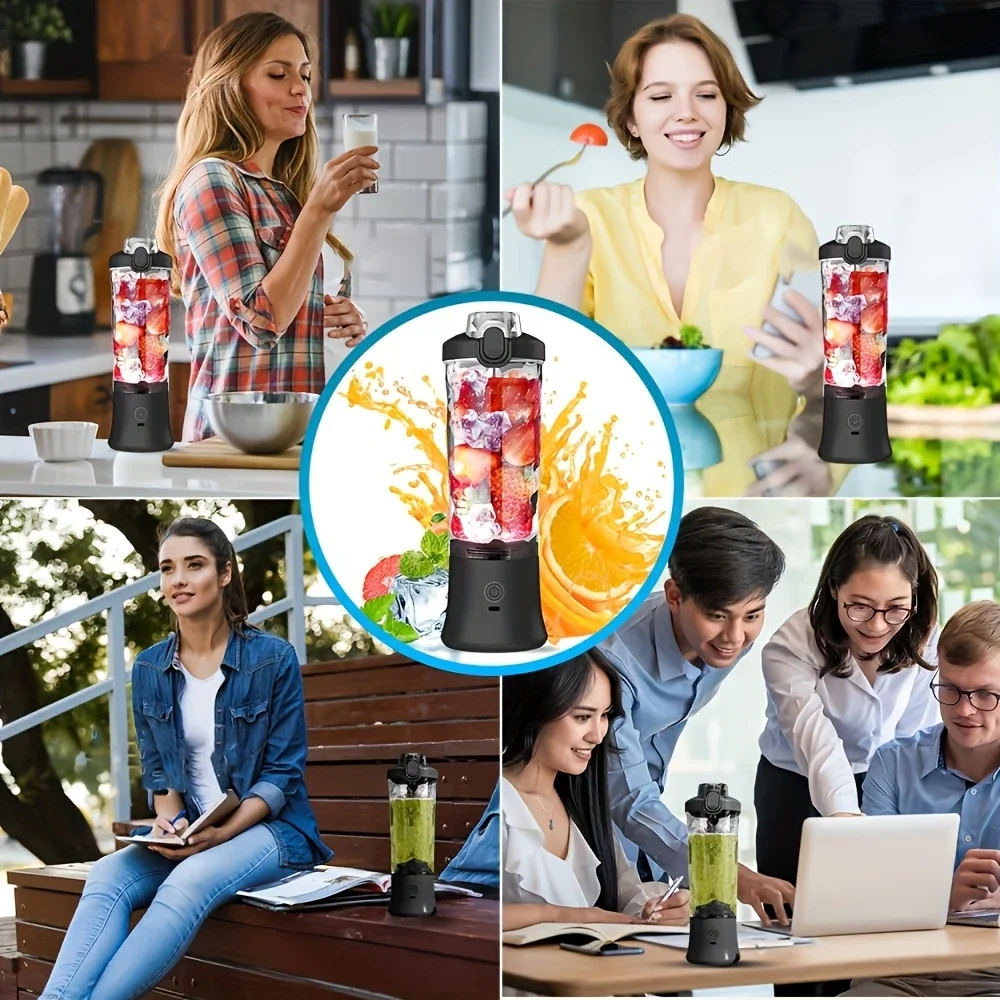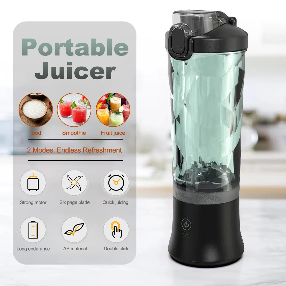 Mini Blender Cup 600ML for Travel Food-Grade ABS Juicer USB Rechargeable for Fruit Smoothies Milkshakes