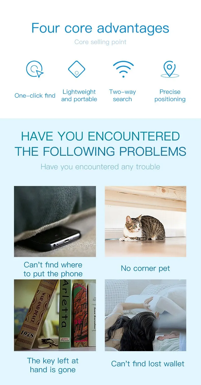 Mini GPS Tracker Anti-Lost Pet Kids Wallet Key bag Positioning Smart Bluetooth Find Locator Tag Alarm Reminder For Ios Android
