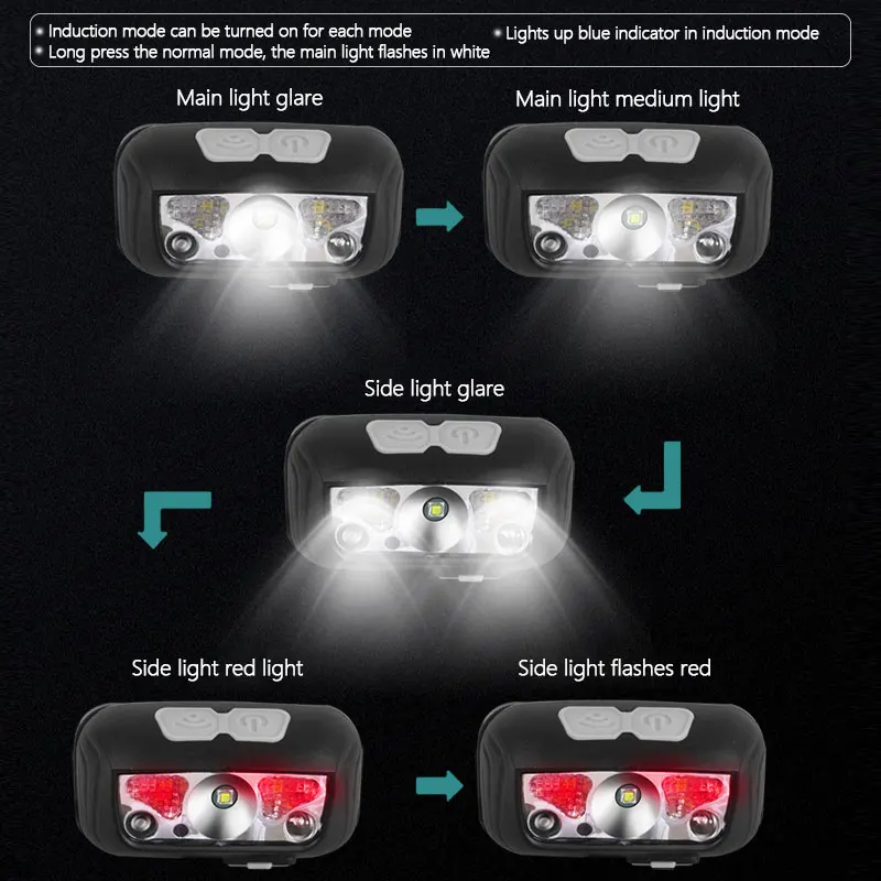 The portable outdoor indnctive light is all-perspectively designed, the USB port charging adds a stronger power on it. Special double-switch design to ensure you a convert modes convert. Hight-capacity rechargeable battery offers a long lasting powering for safer outdoor sports. The headlamp is mainly used for fishing, hunting, night running, hiking and camping.
