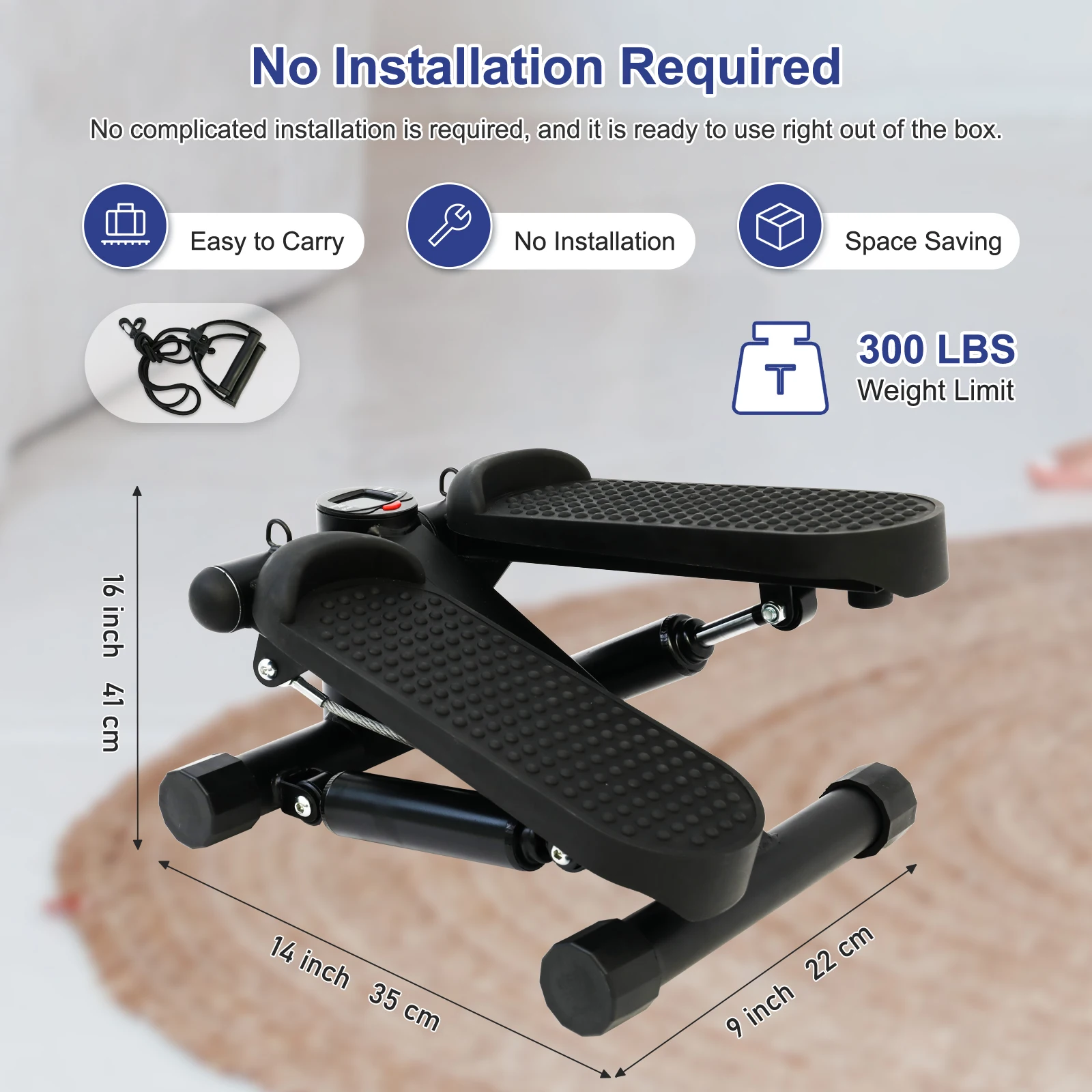 Mini Pedal Stepper Machine LED Display Slimming Treadmill with Pull Rope Exercise Equipment Adjustable to 300 lbs