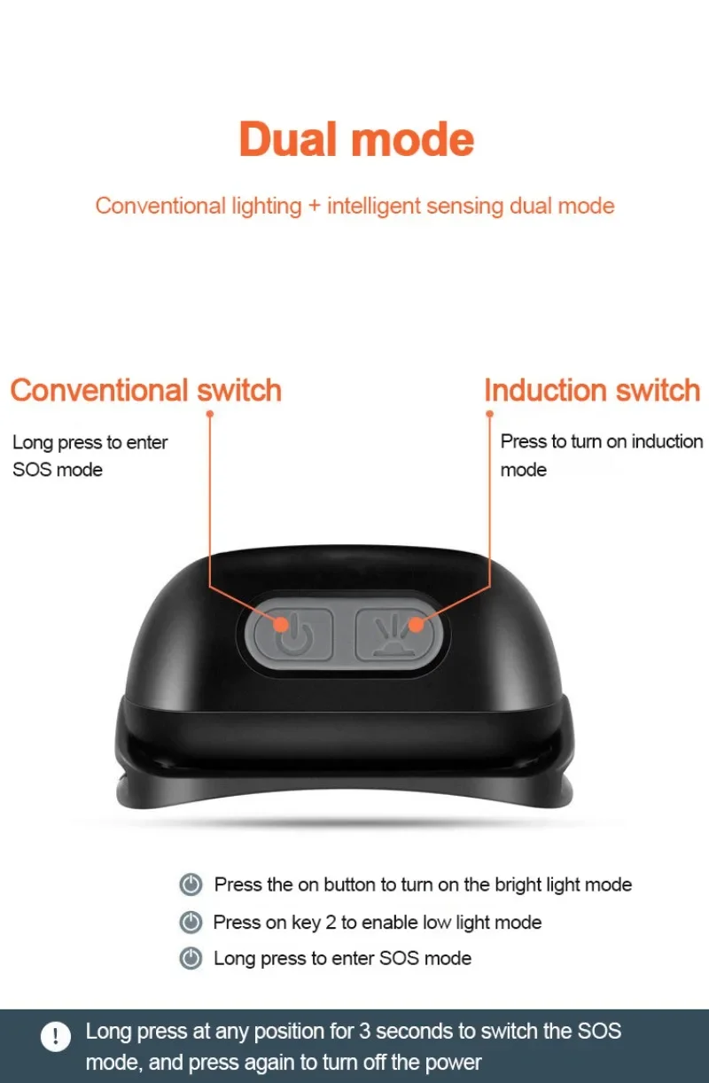 The portable outdoor indicator light design is comprehensive, and USB port charging adds stronger power to it. Special dual switch design ensures you switch modes. Large capacity rechargeable batteries provide long-lasting power for safer outdoor activities. Headlamps are mainly used for fishing, hunting, night running, hiking, and camping.