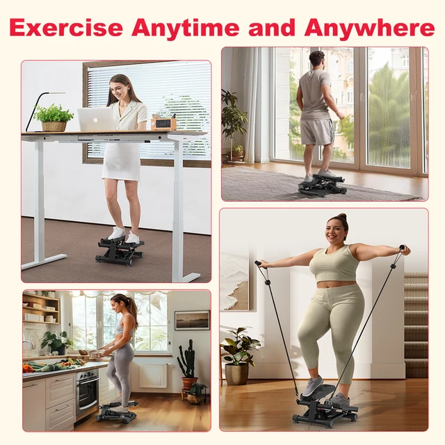 Mini Stepper for Exercise Low-Impact Stair Step Cardio Equipment with Resistance Bands Optional Twist Motion Stepper