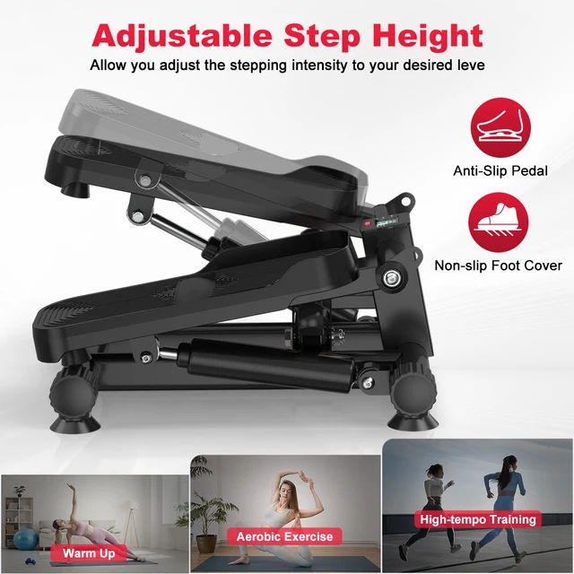 Smooth hydraulic system enables high resistance cardio exerciseAdjustable Step Height Allow you adjust the stepping intensity to your desired leveFunctional LcD Monitor: Easy to keep track of your exercise progress
