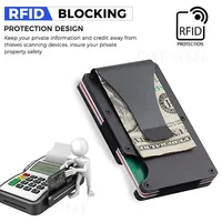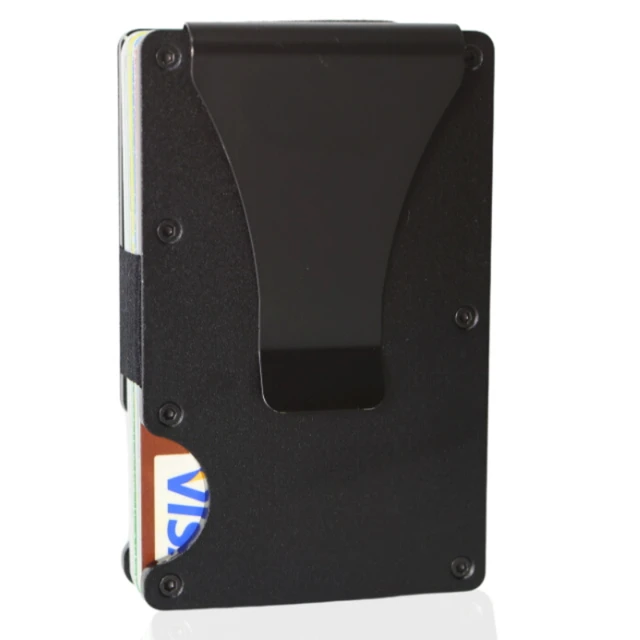 Minimalist Slim RFID Blocking Wallet For Men - Light Weight, Durable & Compact- Aluminum Wallet With Money Clip (Black)
