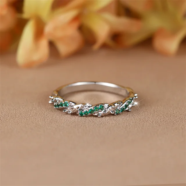 Minimalist Small Green Stone Crossed Rings For Women Silver Color Stacking Thin Wedding Bands Daily Party Zircon Finger Jewelry