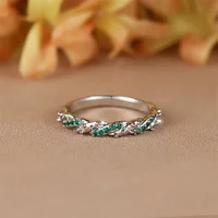 Minimalist Small Green Stone Crossed Rings For Women Silver Color Stacking Thin Wedding Bands Daily Party