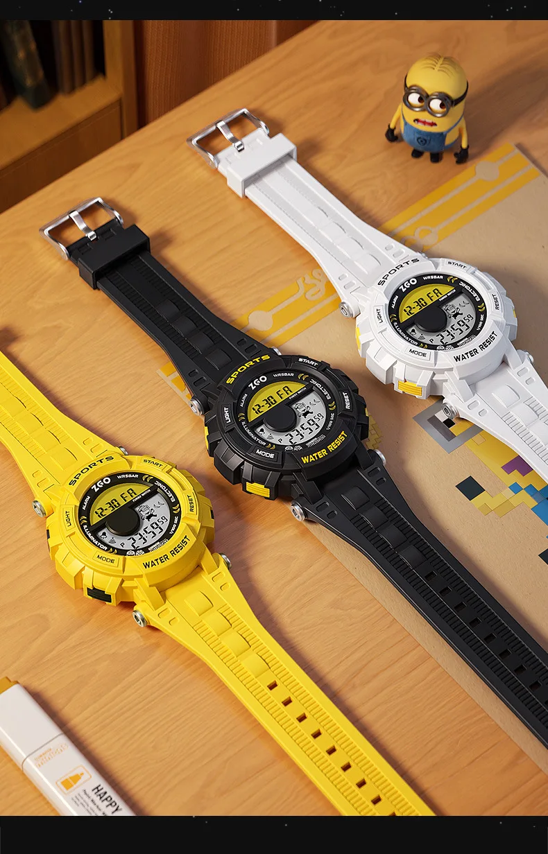 Student Watch 3 Bar Waterproof Simple Alarm Clock Vibration Watch Youth Intelligent Sports Bracelet Rubber Strap Relógios Kids