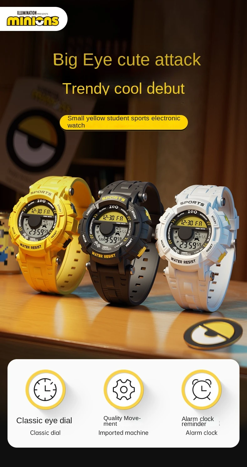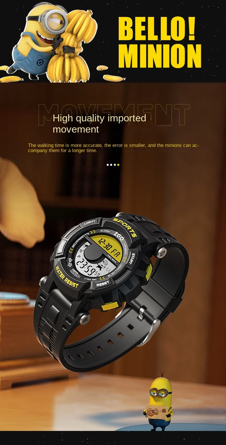 Minion Children’s Watch 2024 New Boys Students Start School Must-Have Sports Waterproof Luminous