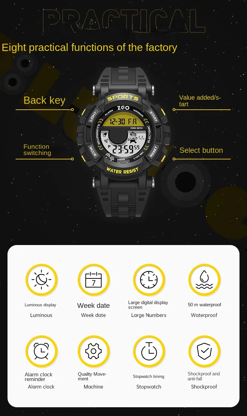 ZGO Kids Watch For Girls Multifunctional Sports Waterproof Digital Wristwatch With Luminous Alarm Functions Gift 821