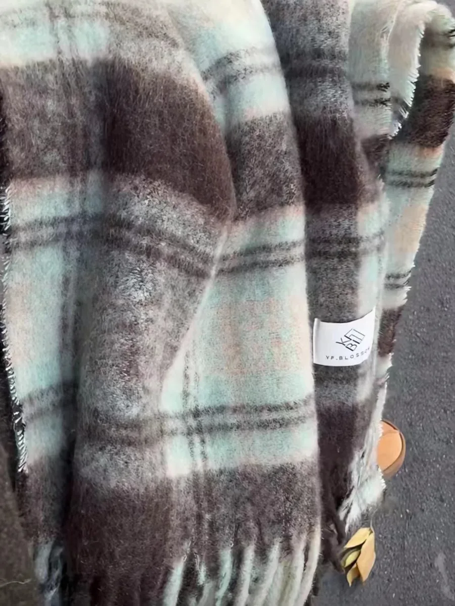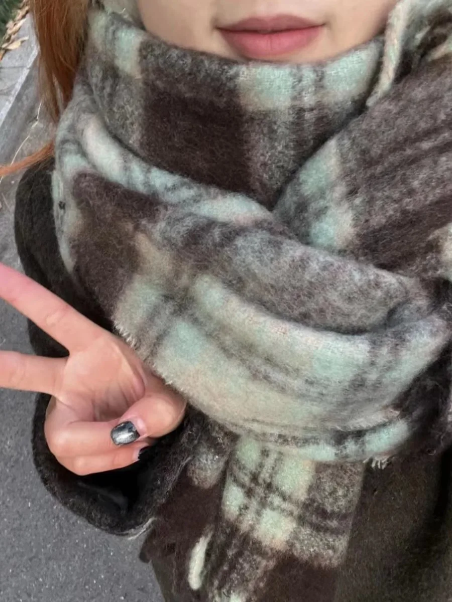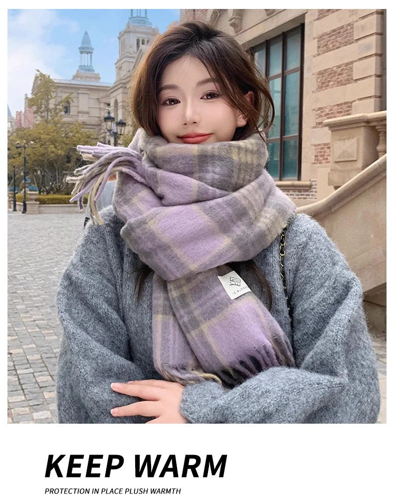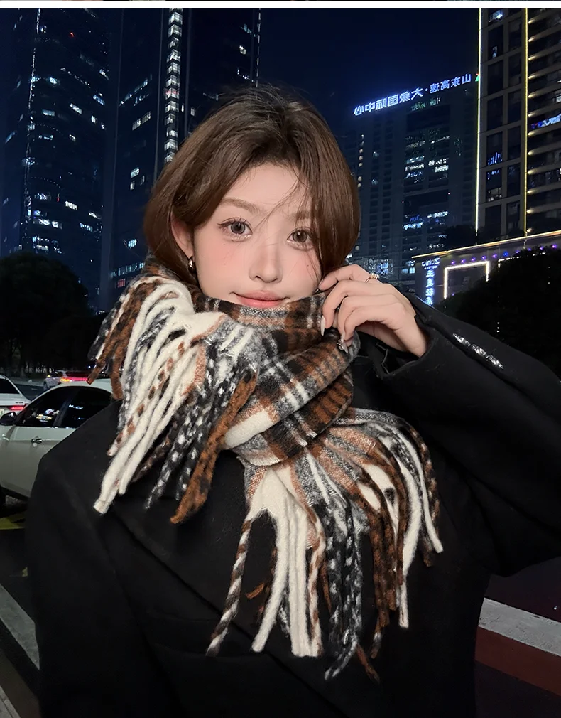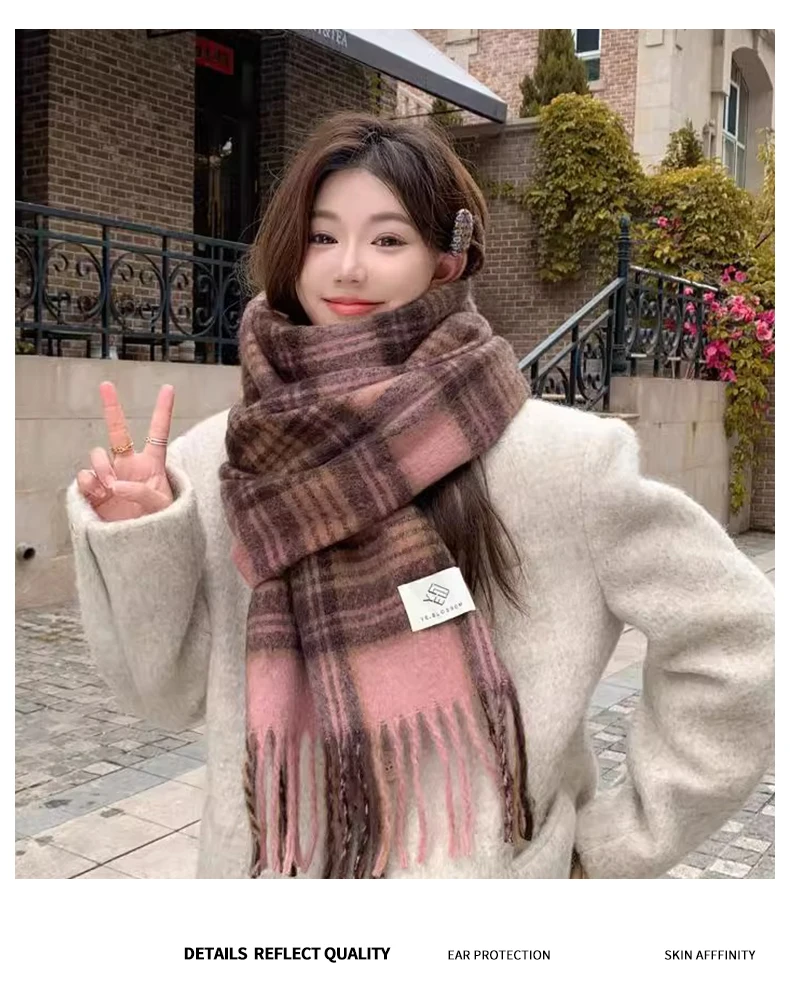 This scarf features a trendy Korean style, perfect for those who want to stay fashionable and warm during the colder months.