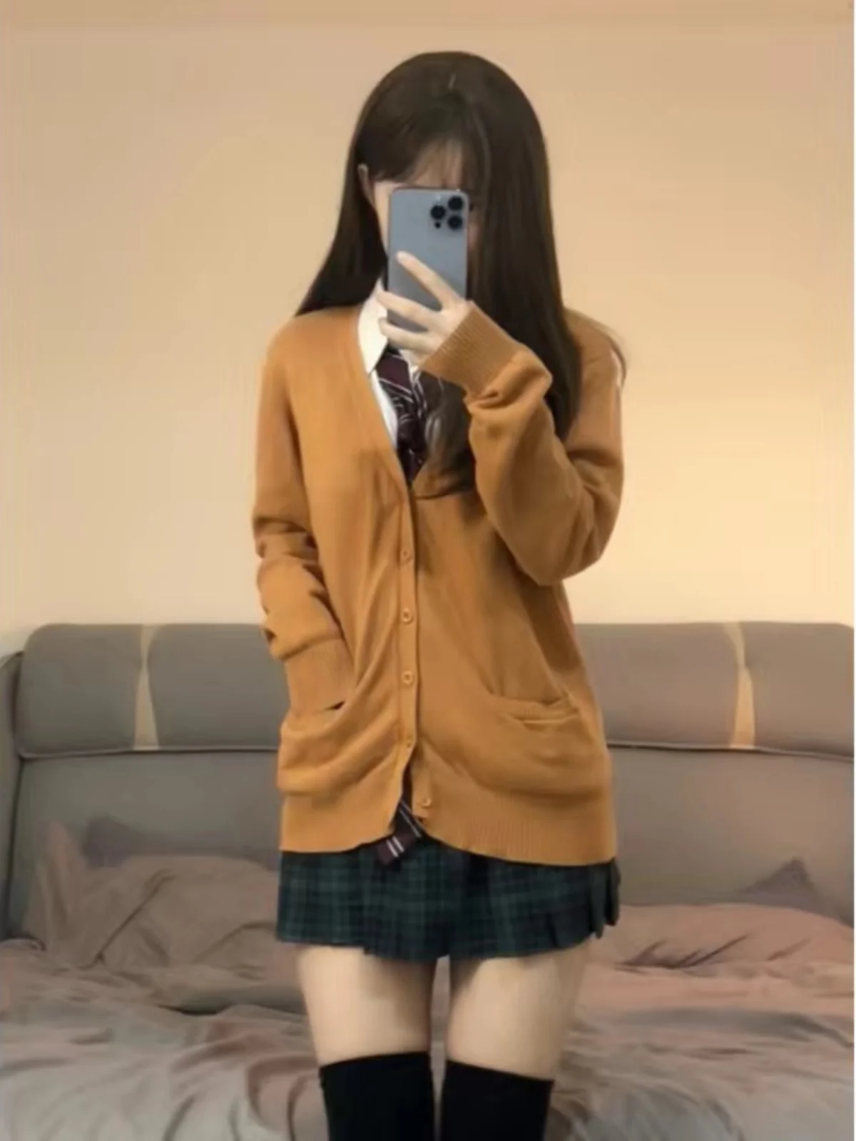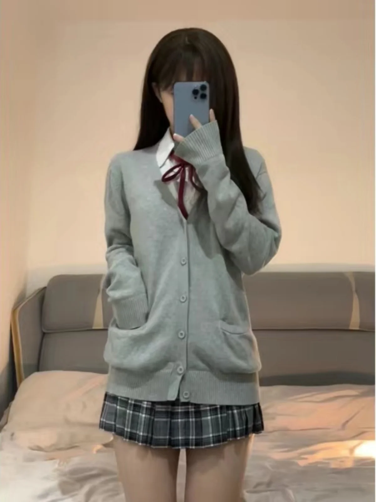 Embrace the sweet college style with this mint powder cardigan, perfect for adding a touch of innocence to your autumn wardrobe.