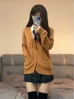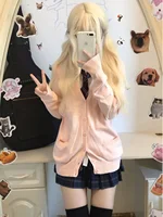 Mint Pink Open Cardigan Sweater Women's Loose Long Sve Milk Flavor Cherry JK orm Knitted Outerwear Autumn Winter Sweet...