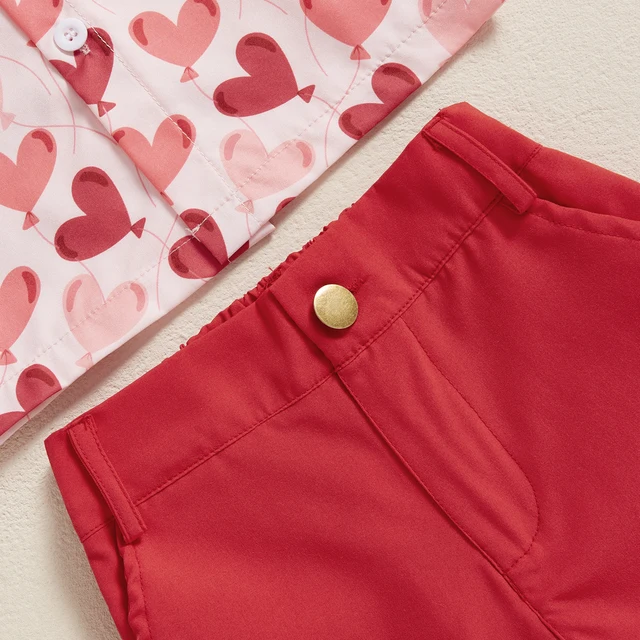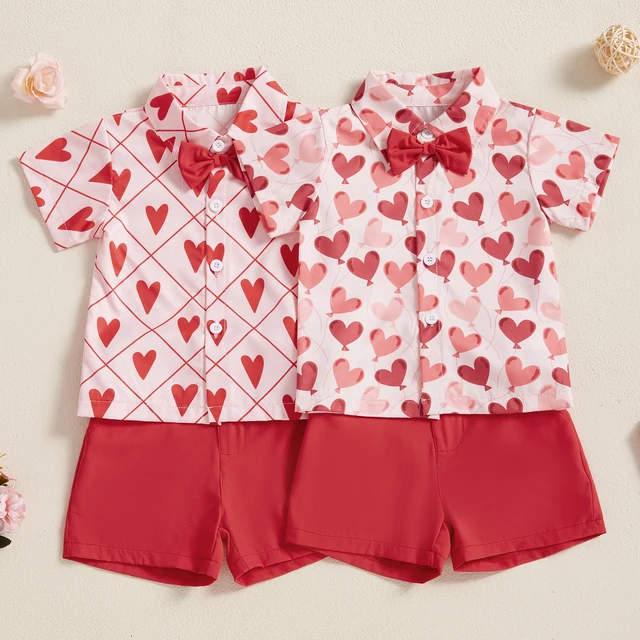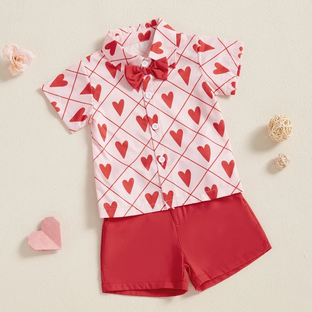MISOWMNJOY Gentleman Toddler Boy Outfits Valentine’s Day Party Kid Clothes Heart Short Sleeve Button-up