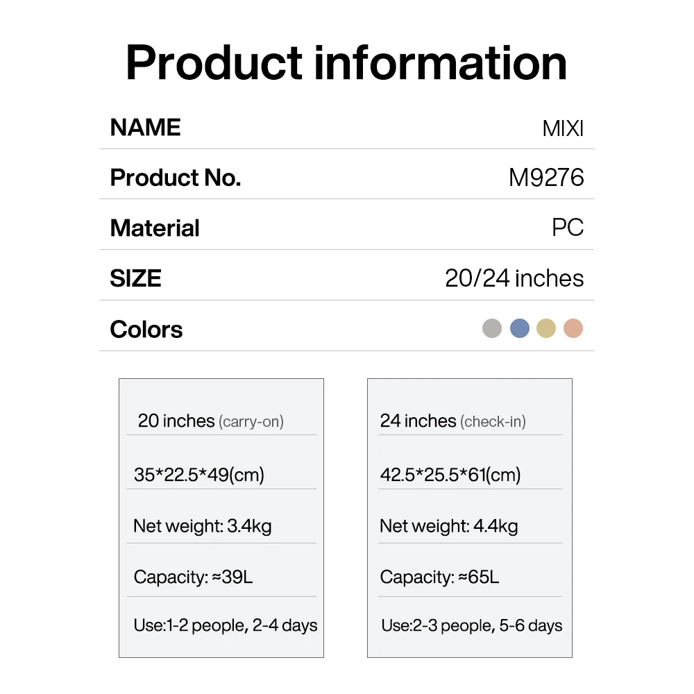 This suitcase is Mixi patent design.Please don’t copy, or we will take legal measures.