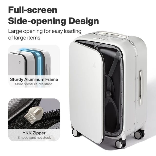 SUSHIMU 20-inch all-aluminum-magnesium alloy luggage with front opening, trolley suitcase, carry-on suitcase, metal travel