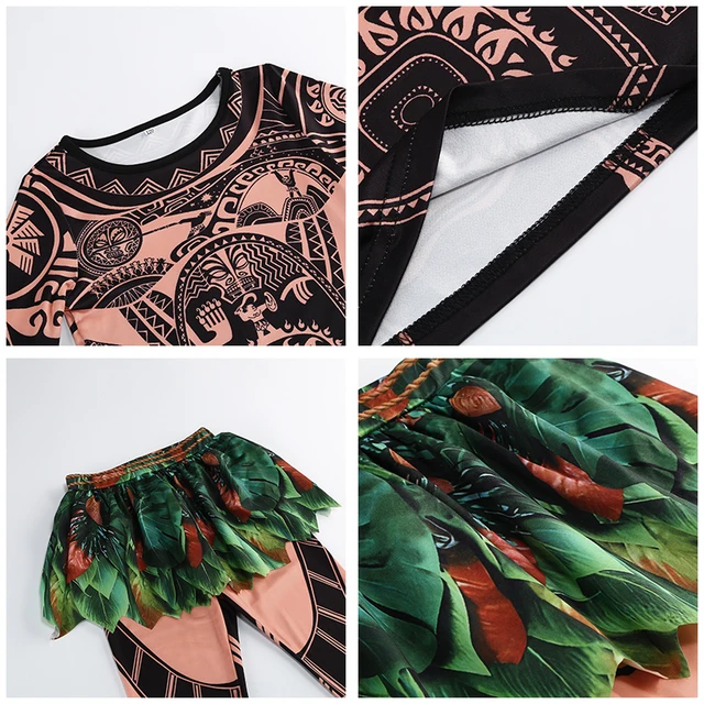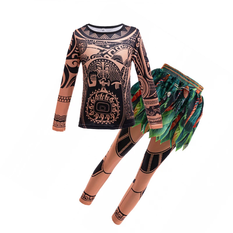 Moana 2 Maui Costume for Kids Complete Set with Tattoo Clothes + Pants Vaiana Dress for Boys Perfect
