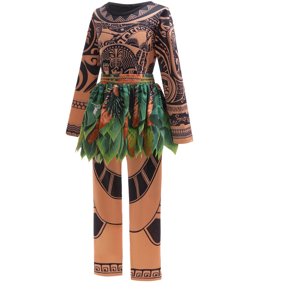 Moana Boy Maui Cosplay Costume Boy Maui Tattoo Same Print Suit Leaf Skirt Movie Character Same Style