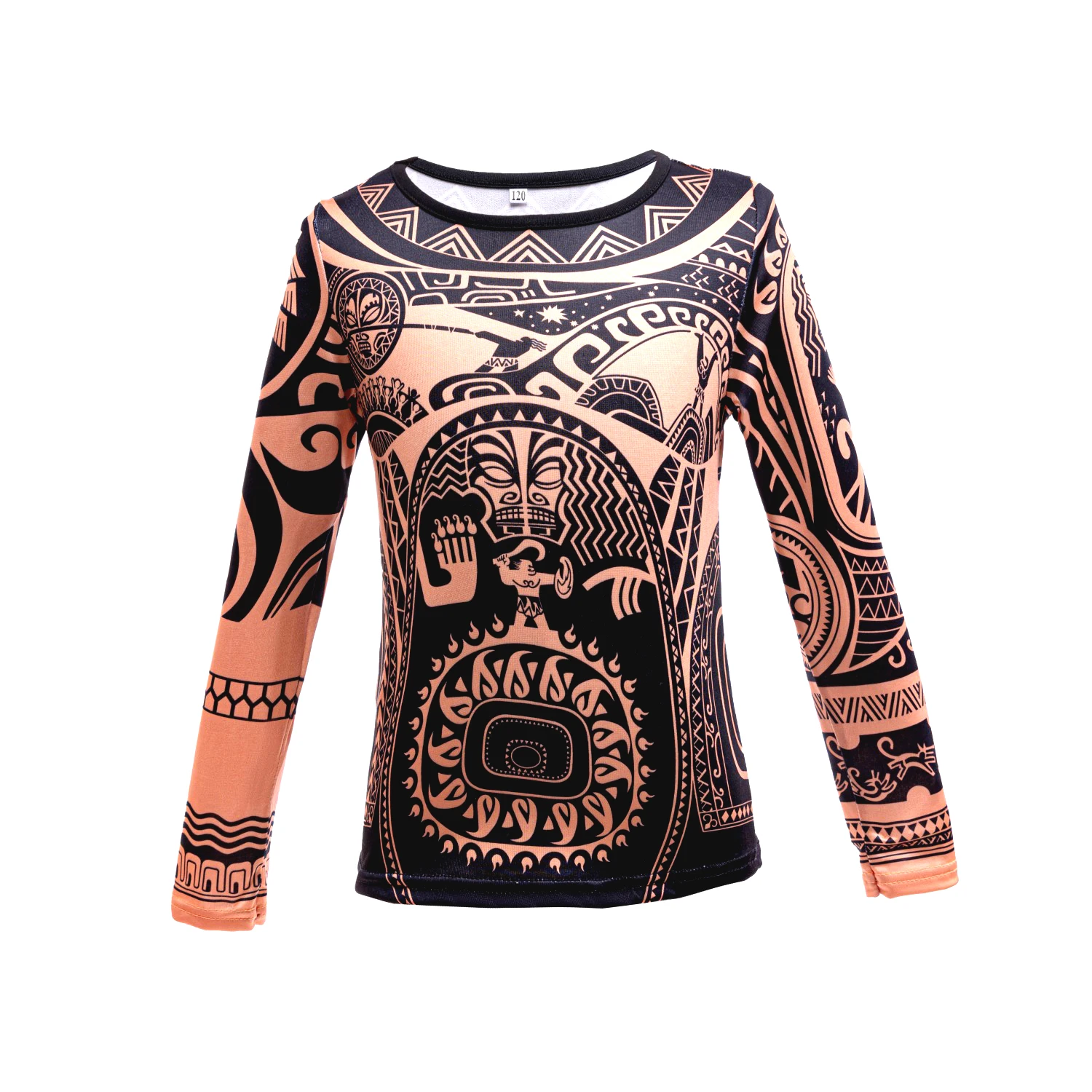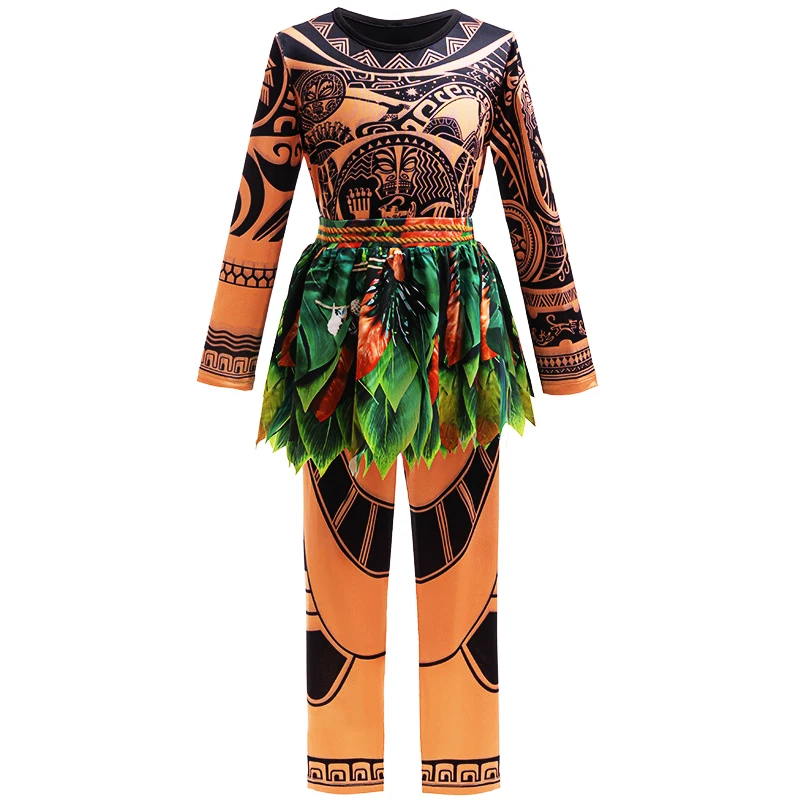 Moana Inspired Semi God Maui Costume for Kids Maoris‘ Tattoo Simulated Clothing Set Top and Pants Carnival