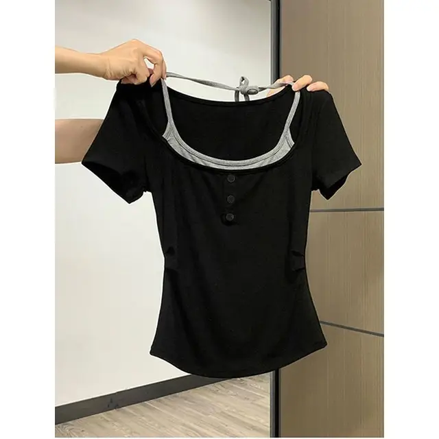 The polo neck design adds a classic touch to this modern T-shirt, making it versatile for various occasions.