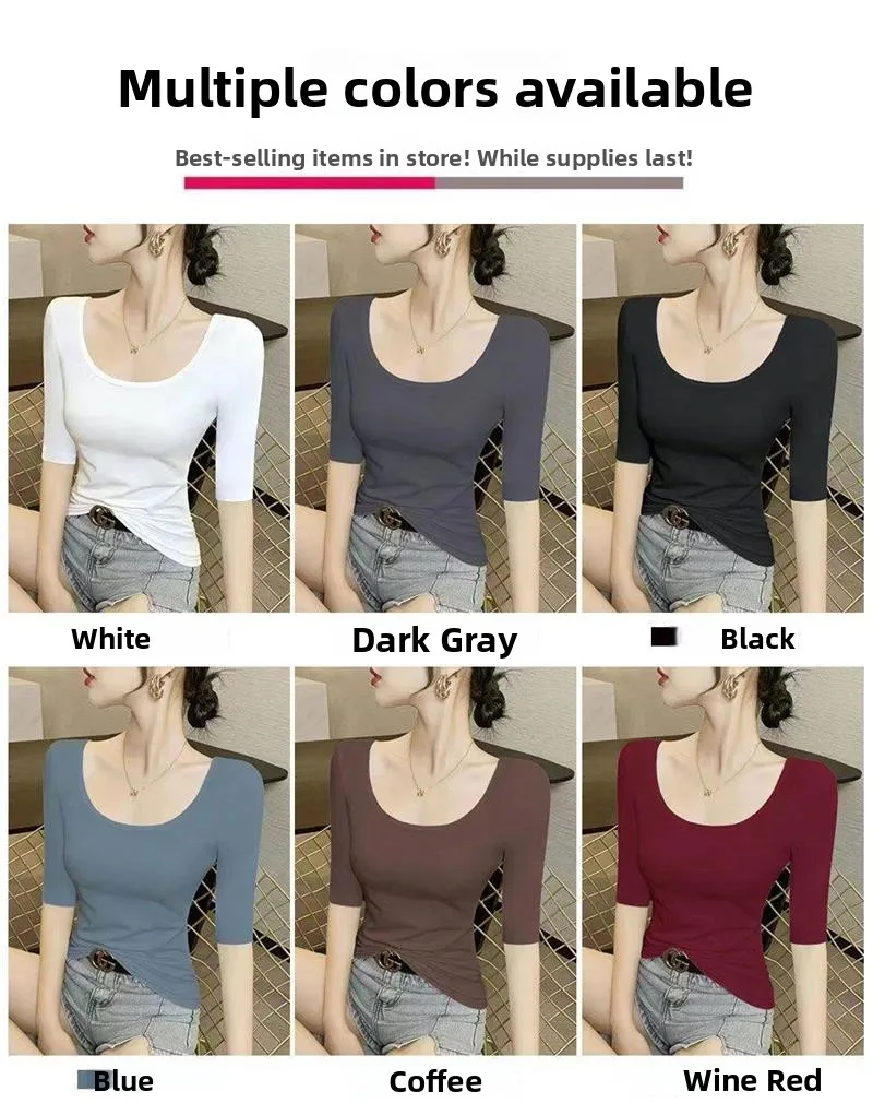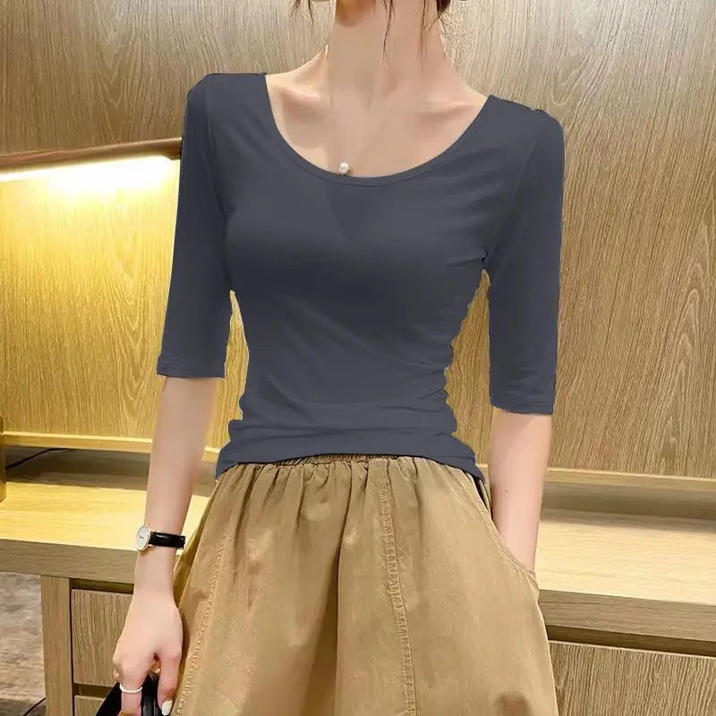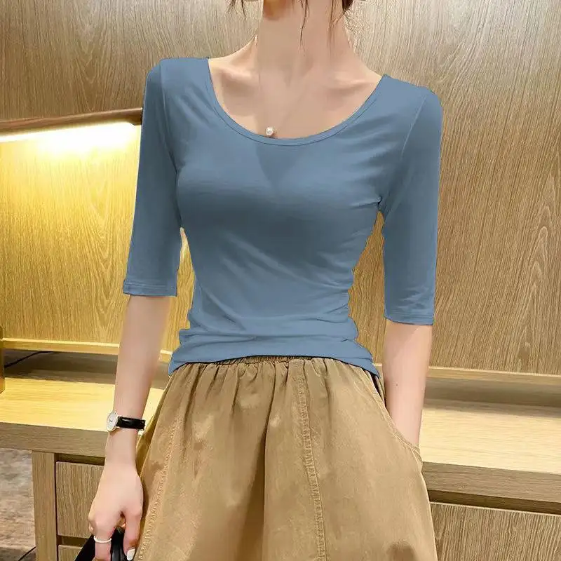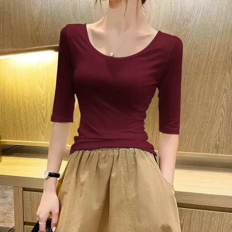 Mod U-Ne ort Sve T-irt Women Summer  Color Slim Fit Versatile Low Ne Midi Sve Base Top Commute Sle