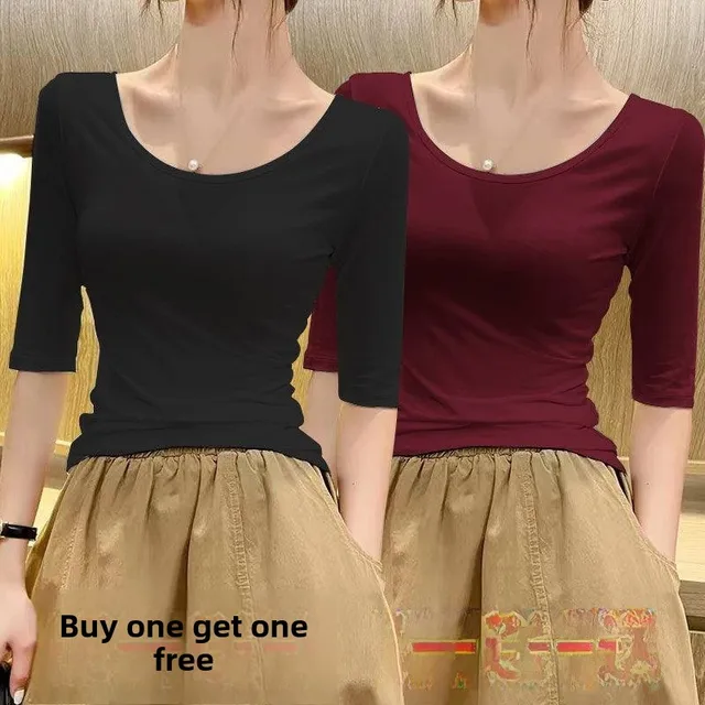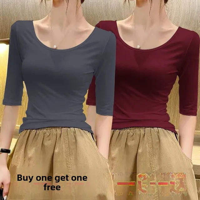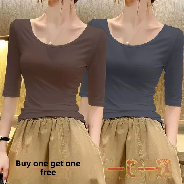 Mod U-Ne ort Sve T-irt Women Summer  Color Slim Fit Versatile Low Ne Midi Sve Base Top Commute Sle