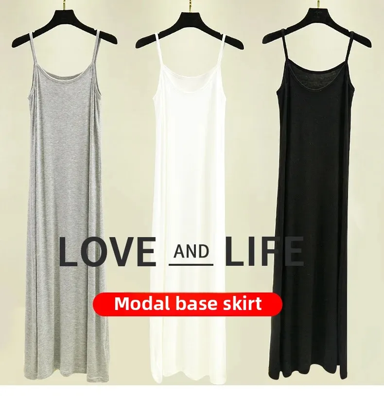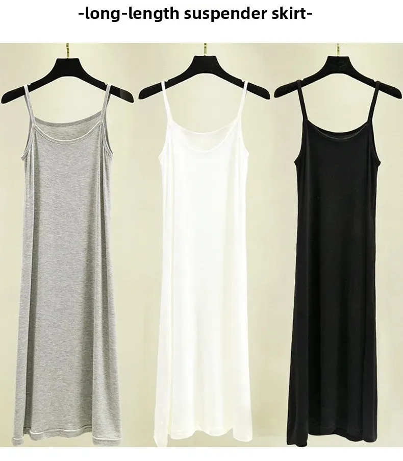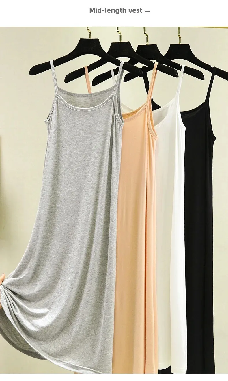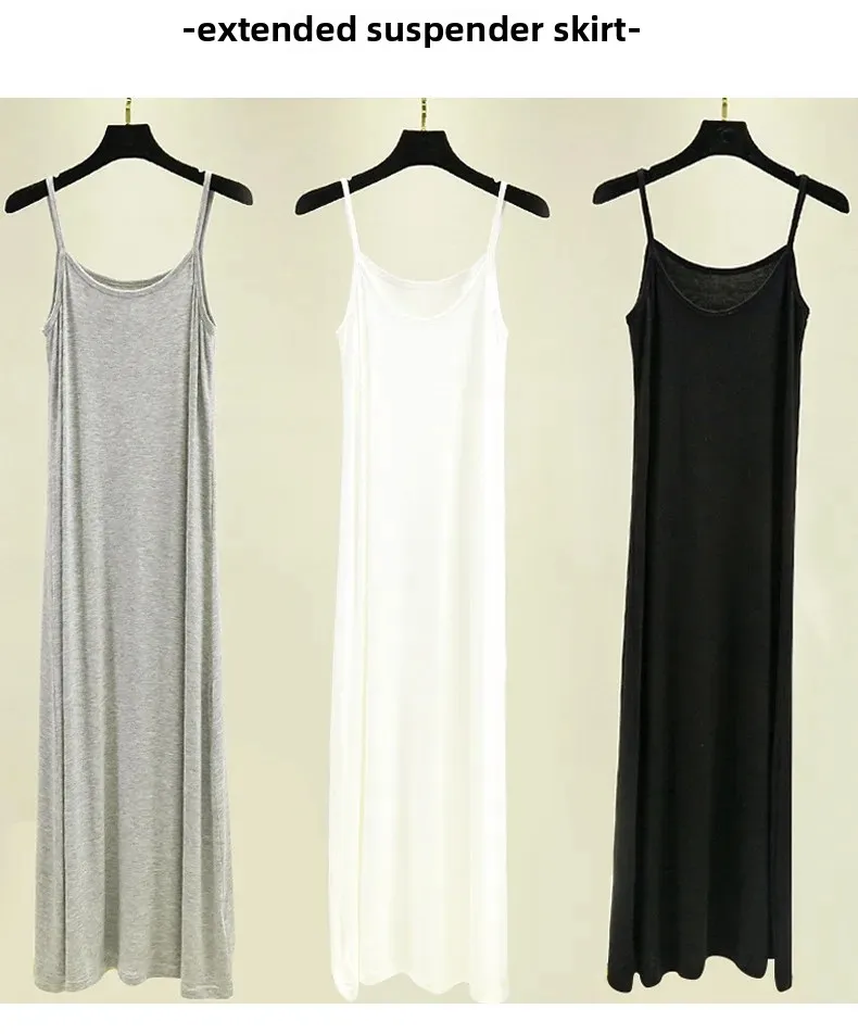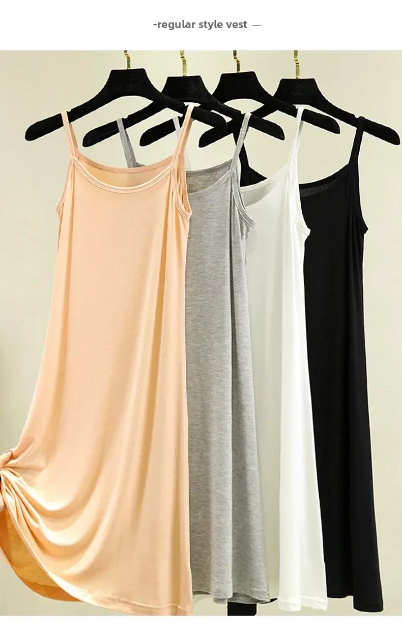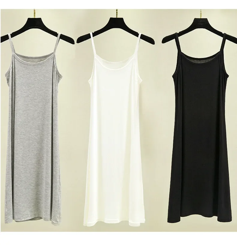 Modal Camisole Dress Women Summer Inner Wear Black White Loose plus Size Long Thin Underdress Casual