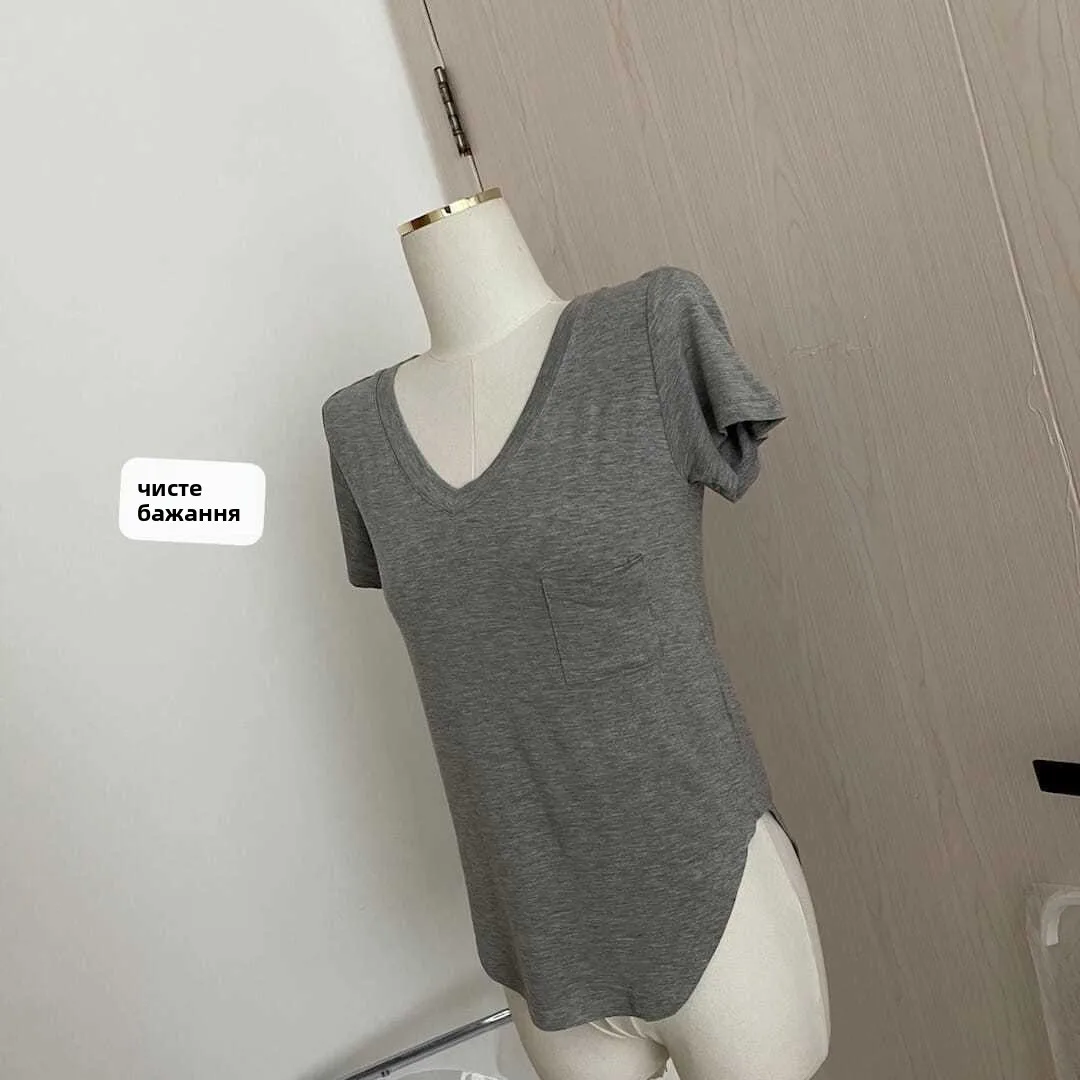 With its solid color and simple design, this T-shirt can be easily paired with any bottom, making it a staple in your wardrobe.
