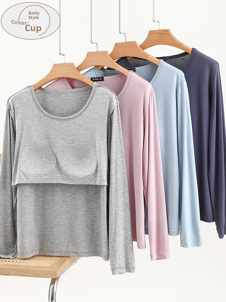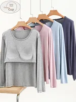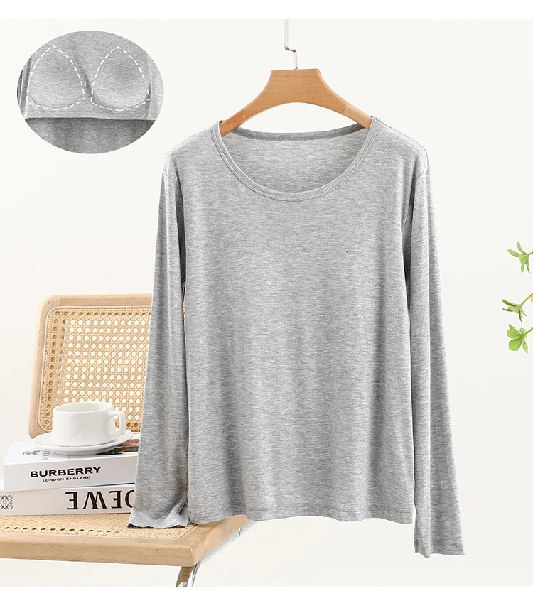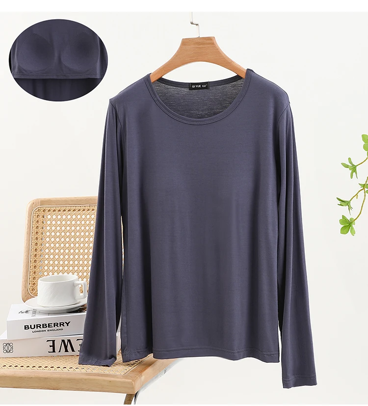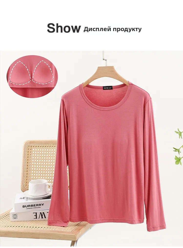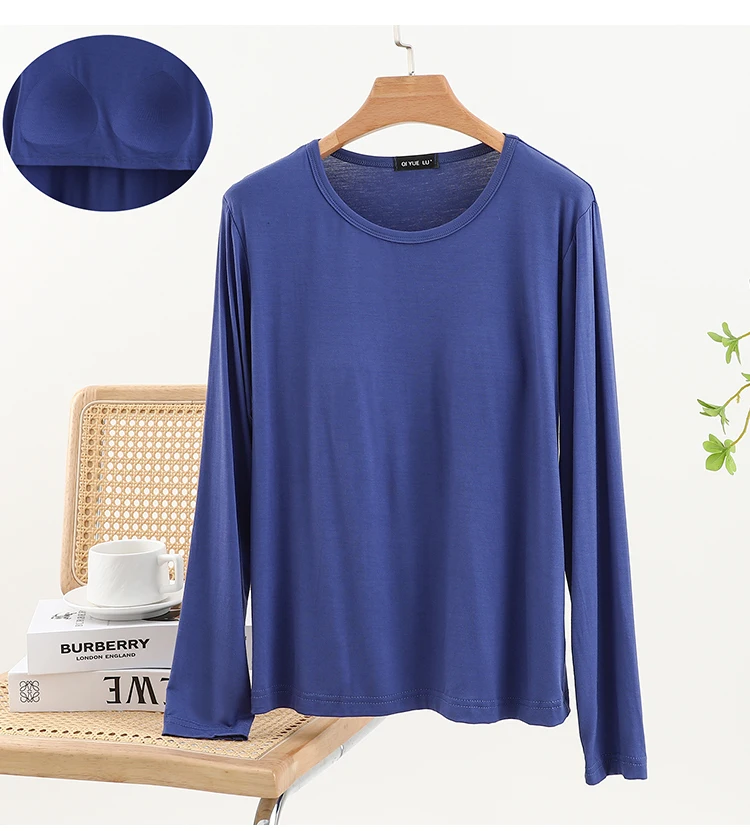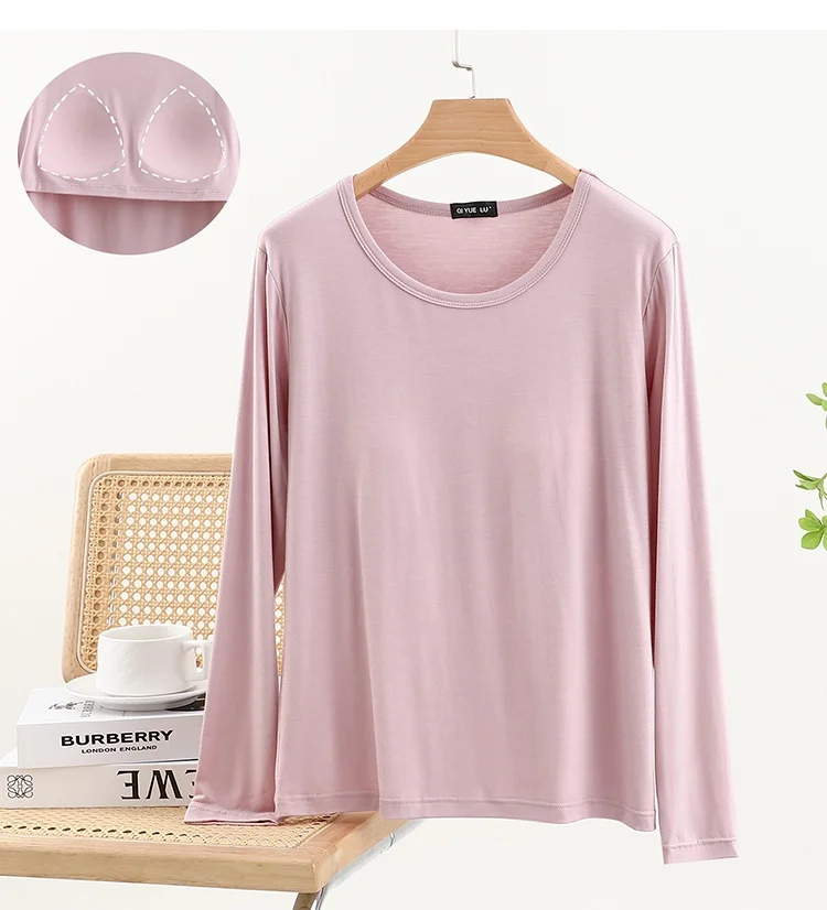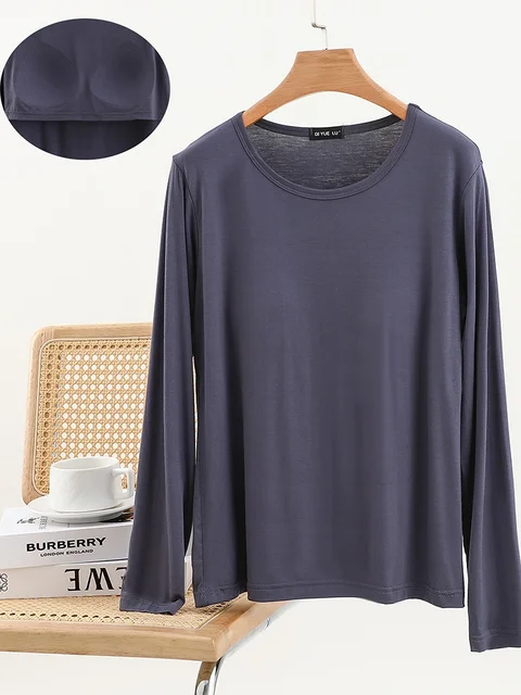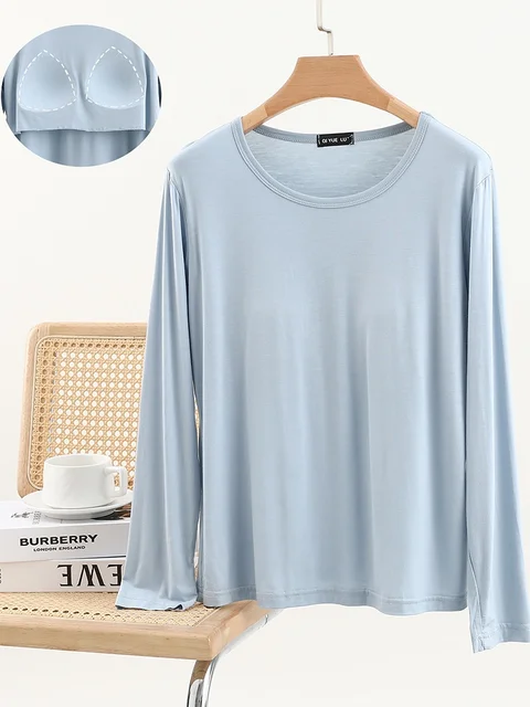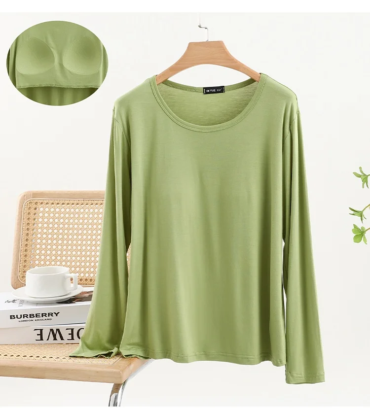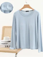 Modal Long Sve round Ne T-irt Women’s Spring Thin Pure Color Base irt No Bra Casual Versatile Top