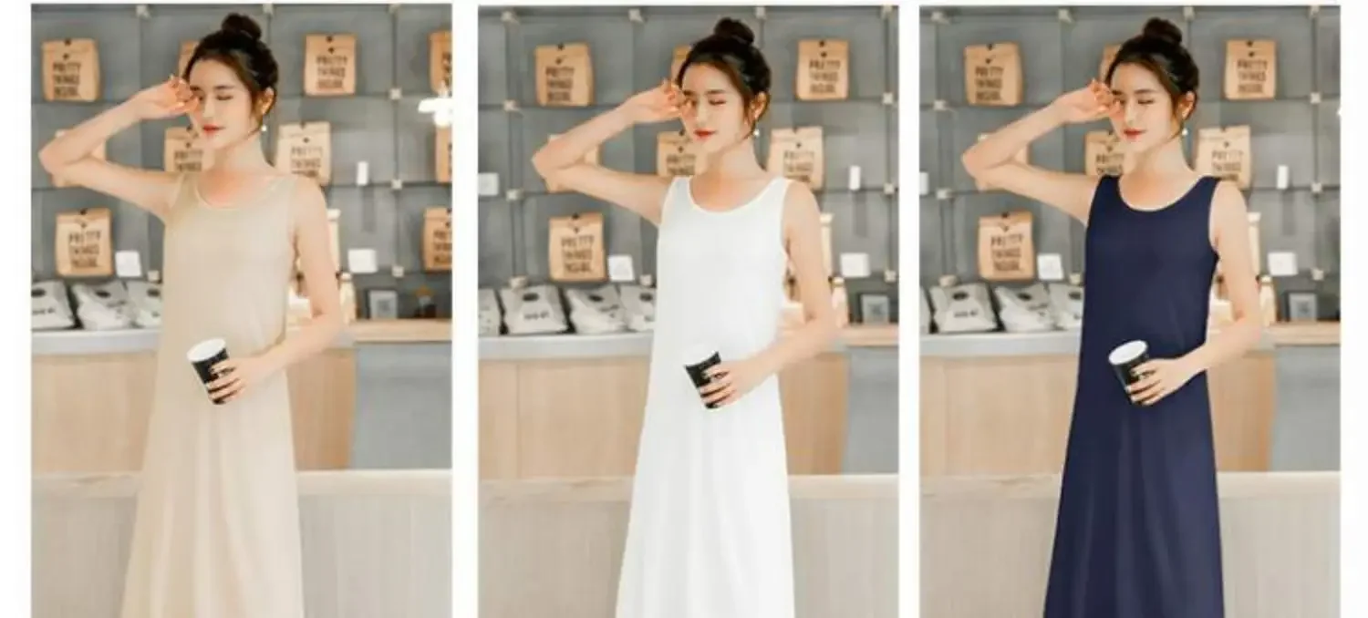 • Versatile Wear : This versatile dress can be worn as a nightdress or base skirt, making it a staple piece for any wardrobe. Its round neck and knee-length design add versatility to your look.