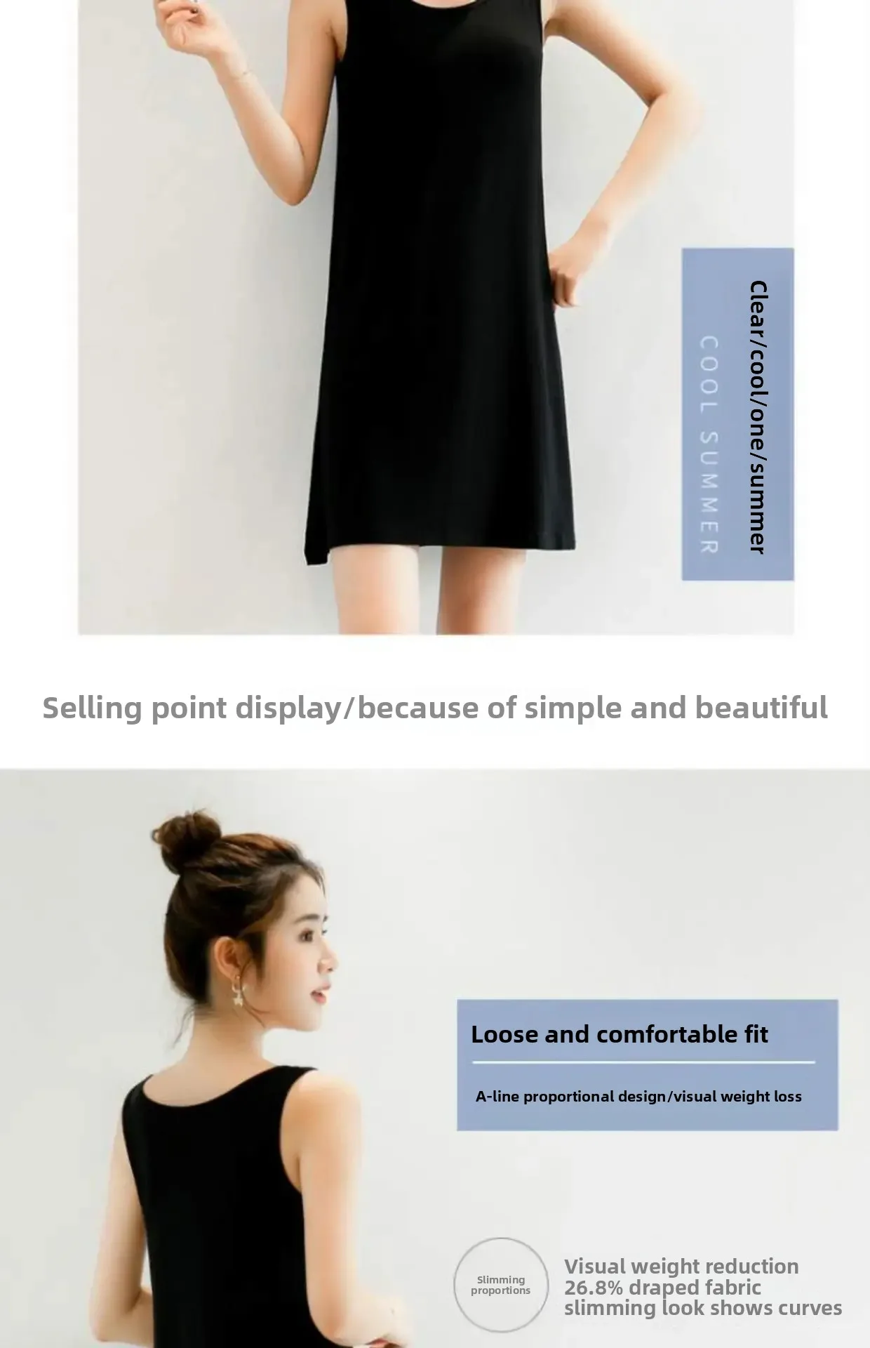 • Summer-ready Design : Stay cool and stylish with our sleeveless dress, perfect for summer days. Its loose fit and empire waistline offer comfort and elegance.