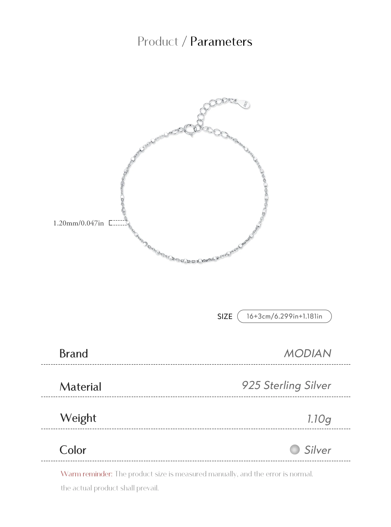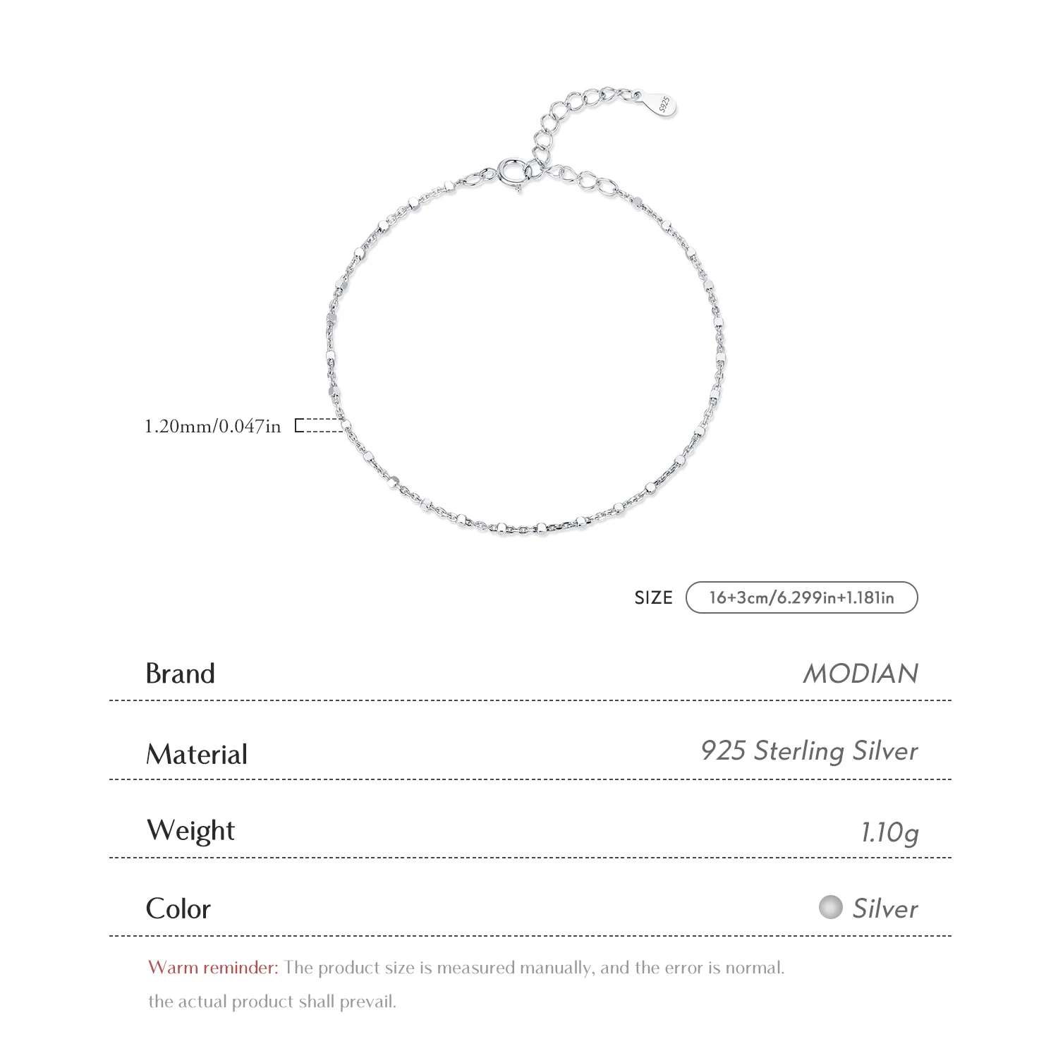 Be the first to review “MODIAN 925 Sterling Silver Fashion Simple Geometric Beads Bracelet For Women Daily Office Fine Jewelry”