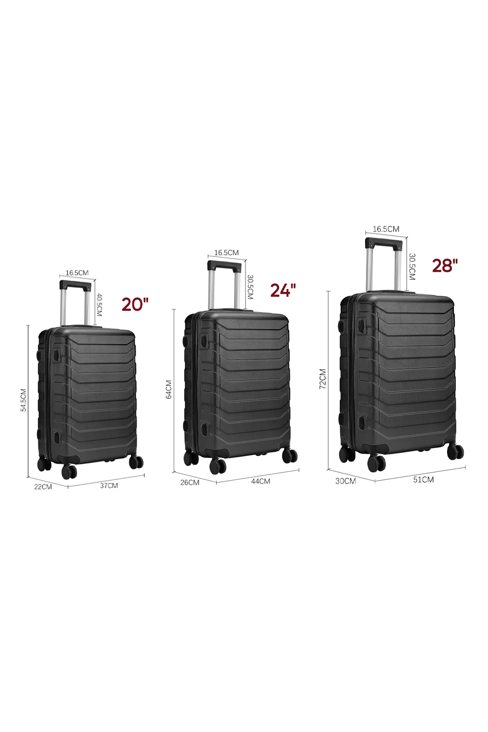Case Size: 37cm W x 22cm D x 54.5cm H/44cm W x 26cm D x 64cm H/51cm W x 30cm D x 72cm H