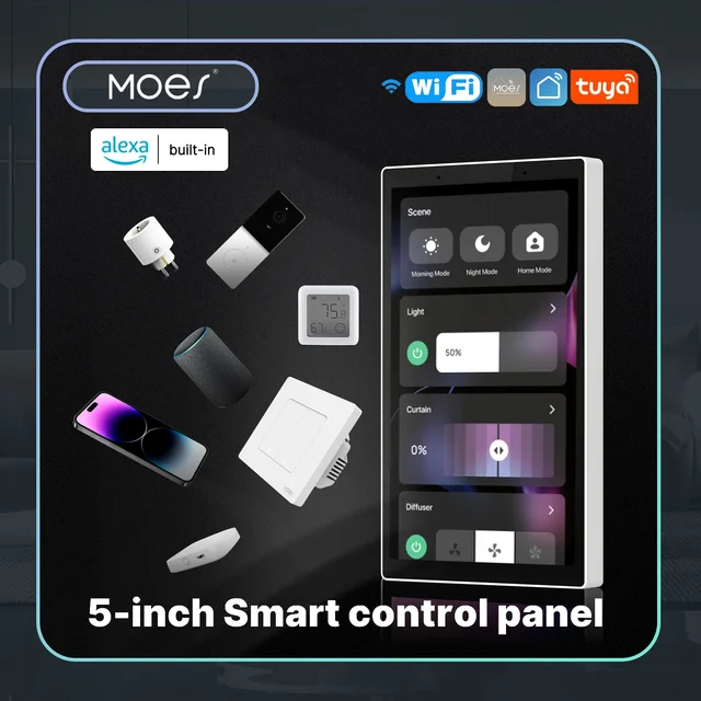 MOES Tuya Wifi Smart 5-inch Touch Screen US Center Control Panel Voice Control Alexa And ZigBee Gateway