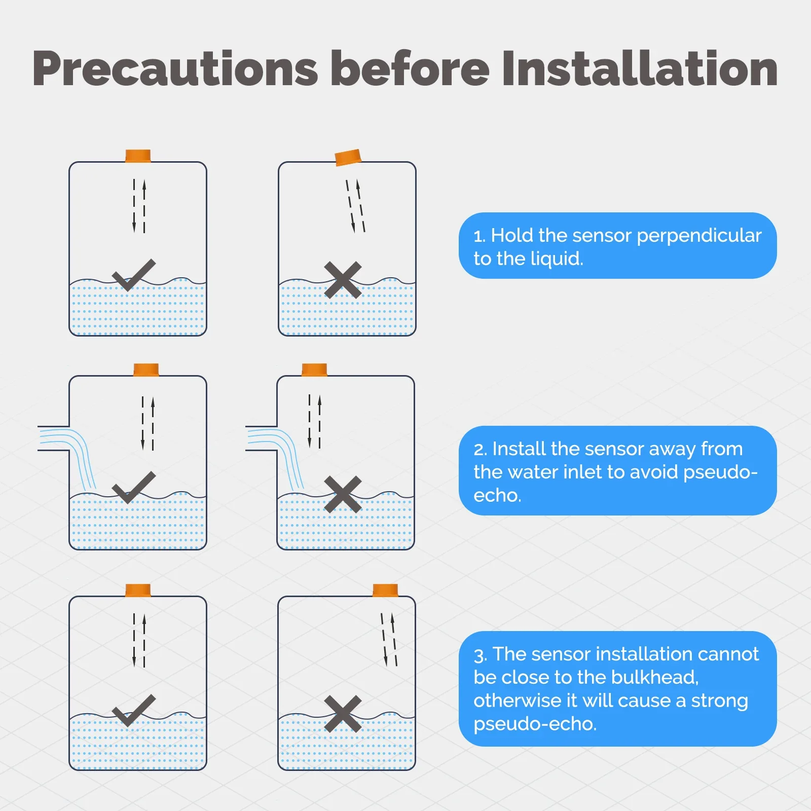 2. Install the sensor away from the water inlet to avoid pseudo-echo.