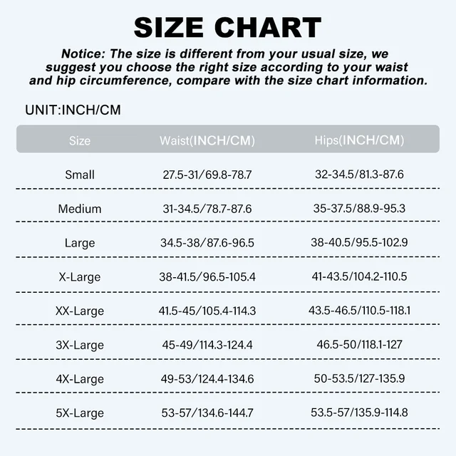 NOTICE: The size is different from your usual purchase, we recommend you to choose the right size according to your waist and hip circumference, compare with the size chart information. You can also contact us with your waist and hip circumference, we will recommend the right size for you!