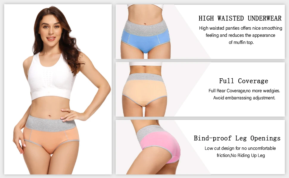 • Good Quality & High Comfort: Cotton stretch full coverage underwear, no pilling, no pinching, no binding,no panty lines, not too tight but not loose, the high waisted underwear offers a bit of tummy support and reduces the appearance of muffin top.
